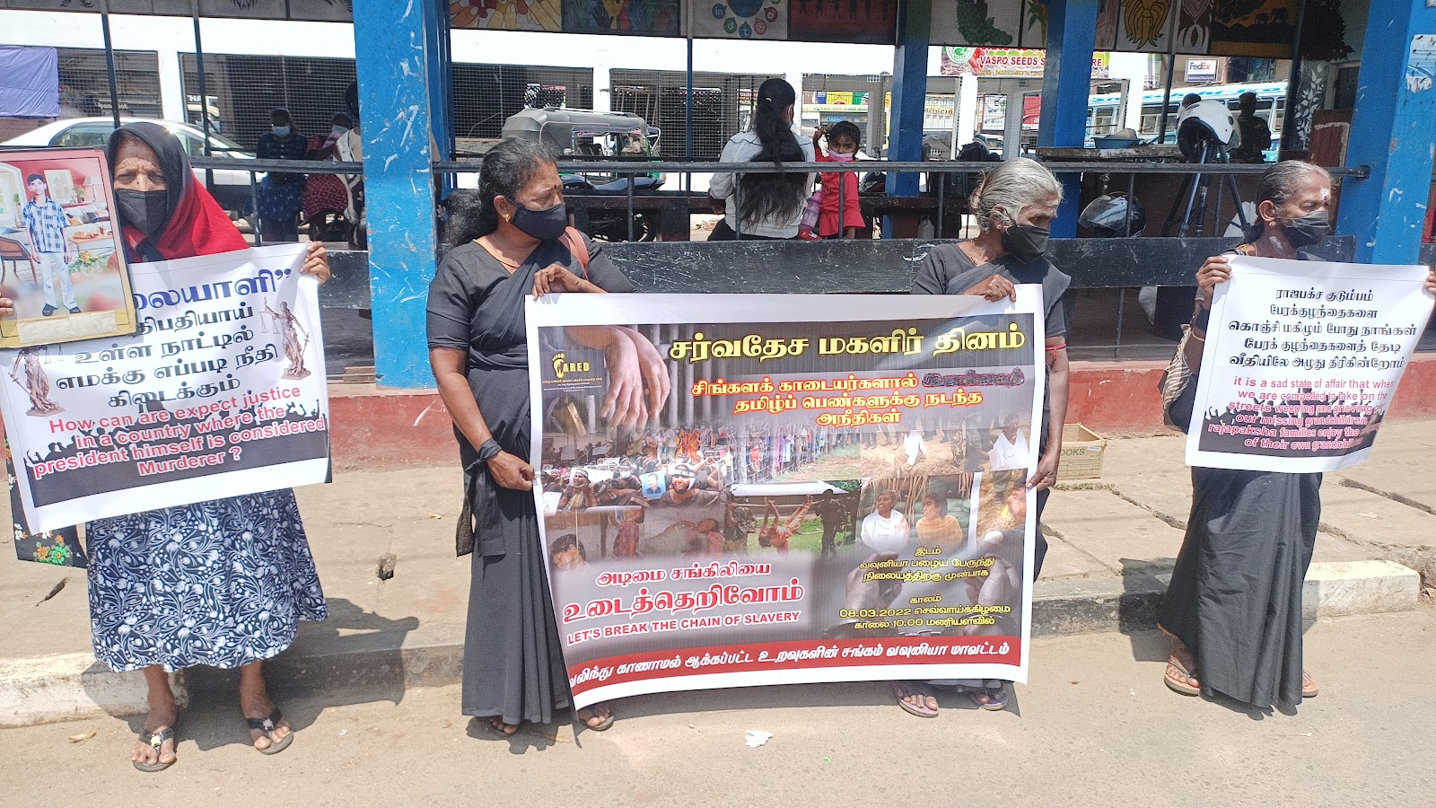 சர்வதேச மகளீர் தினத்தினை முன்னிட்டு வவுனியாவில் வலிந்து காணாமல் ஆக்கப்பட்ட உறவுகளின் சங்கத்தினரால் பழைய பேருந்து நிலையத்திற்கு முன்பாக இன்று (08) காலை கவனயீர்ப்பு போராட்டம் ஒன்று முன்னெடுக்கப்பட்டது.