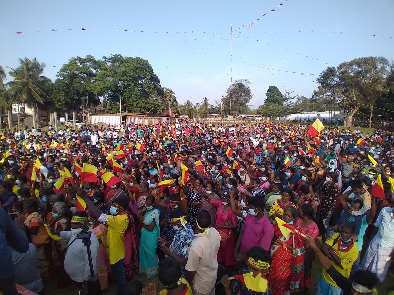 “தமிழர்களின் அரசியல் அபிலாசைகளை 13 ஆம் திருத்தத்திற்குள் முடக்கும் சதி முயற்சியை முறியடிப்போம்” “தமிழ்த் தேசம், இறைமை, சுயநிர்ணய உரிமை, வடக்கு கிழக்கு இணைந்த தாயகம் அங்கீகரிக்கப்பட்ட சமஷ்டித் தீர்வை வலியுறுத்துவோம்” என்னும் அடிப்படையில் தமிழ் மக்களினதும், வெகுசன அமைப்புக்களினதும் பங்குபற்றலுடன் 2022 தை 30ம் திகதியன்று, யாழ் நல்லூர் கிட்டு பூங்காவில் வெளியிடப்பட்ட பிரகடனத்தை மீளவும் உறுதிப்படுத்த, வவுனியா தாண்டிக்குளம் ஐயானார் விளையாட்டுக்கழக மைதானத்தில் 2022 பங்குனி 13ம் திகதியாகிய இன்று தமிழர்கள் நாம் பல்லாயிரமாய்த் திரண்டு நிற்கின்றோம்.