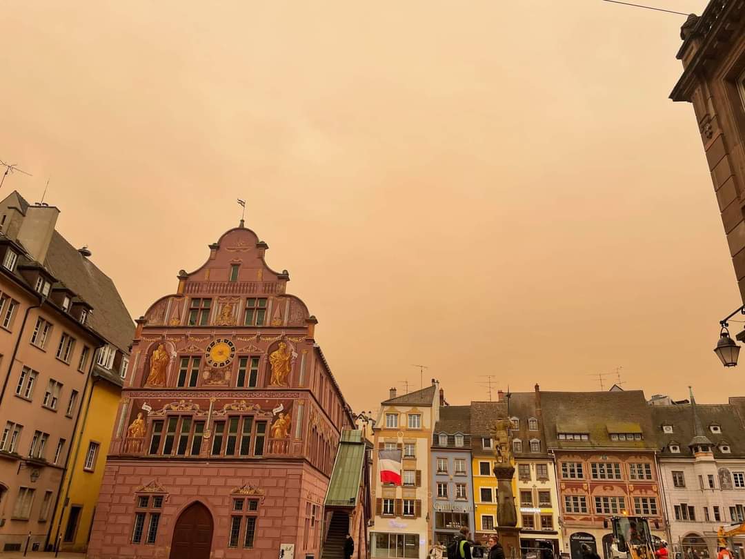 பிரான்ஸின் பல பிராந்தியங்களில் இன்று காலை வானம் ஆபிரிக்காவின் சஹாரா பாலைவன வர்ணத்தில் காட்சி