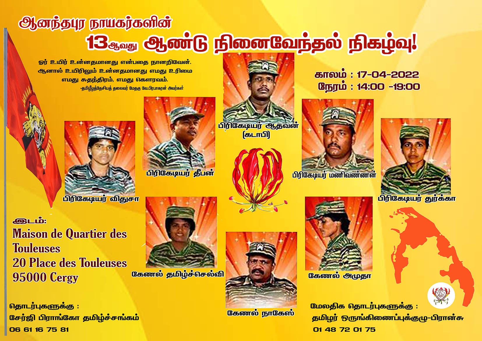 சிறப்பு செய்திகள்புலத்துச்செய்திகள் பிரான்சில் ஆனந்தபுர நாயகர்களின் 13 ஆவது ஆண்டு நினைவேந்தல்! By Admin - March 25, 2022 0 643 பிரான்சில் ஆனந்தபுர நாயகர்களின் 13 ஆவது ஆண்டு நினைவேந்தல் நிகழ்வு வரும் 17.04.2022 ஞாயிற்றுக்கிழமை பிற்பகல் 14.00 மணிக்கு இடம்பெறவுள்ளது.