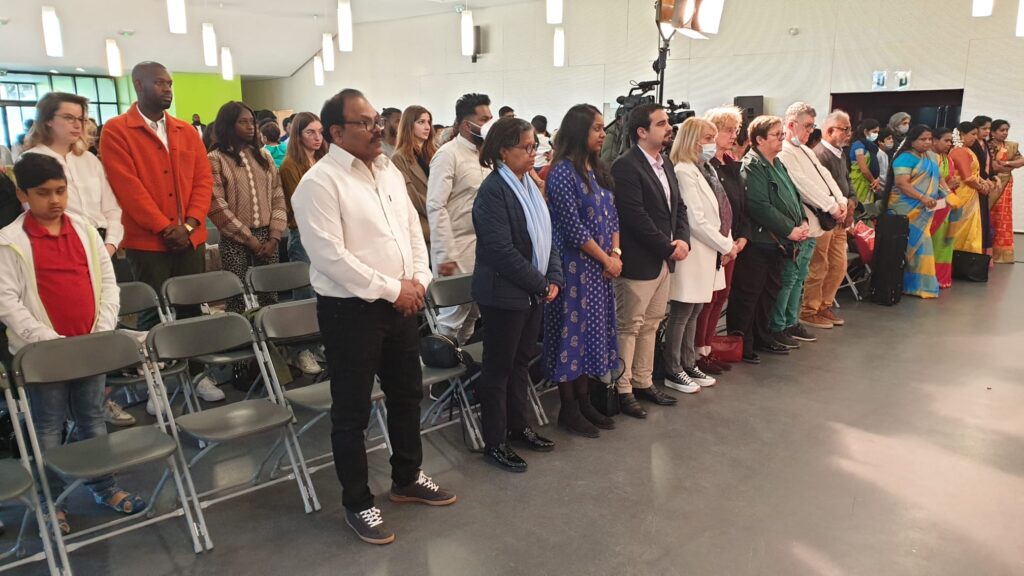 27.03.2022 காலை 10.00 மணிக்கு அகவணக்கத்துடன் இறைவணக்கம் இடம் பெற்றது. பரதக்கலையின் கடவுளாகிய நடராசர் உருவச்சிலைக்கான ஒளியேற்றலினை மூத்த கலைஞர்கள் திருவாட்டி. கோமளா கந்தையா திருவாட்டி. அம்பிகை பாலகுமாரு திருவாட்டி. கௌசலா ஆனந்தராஐh அவர்களுடன் நடனஆசிரிகைகள் திருவாட்டி. அனுசா மணிவண்ணன் திருவாட்டி. வினோதா செந்தூரன் ஆகியோர் ஏற்றி வைத்தனர்.