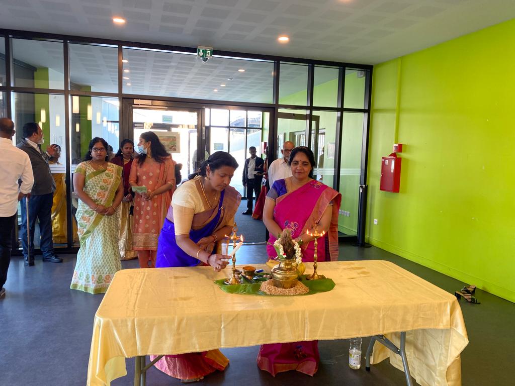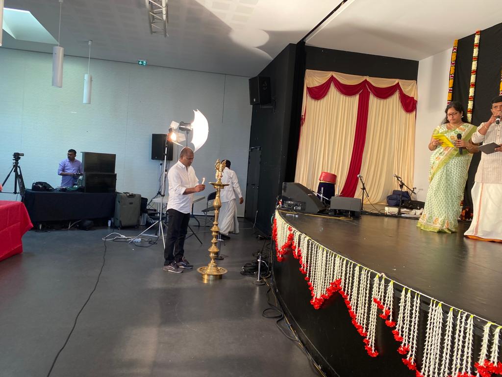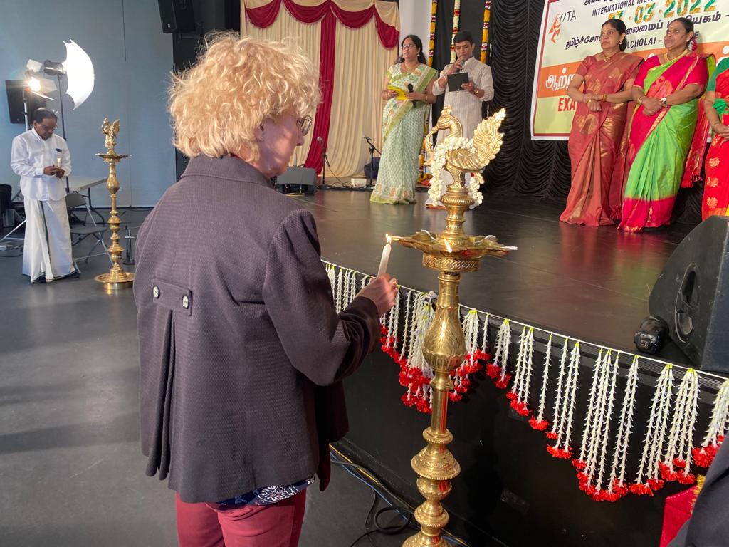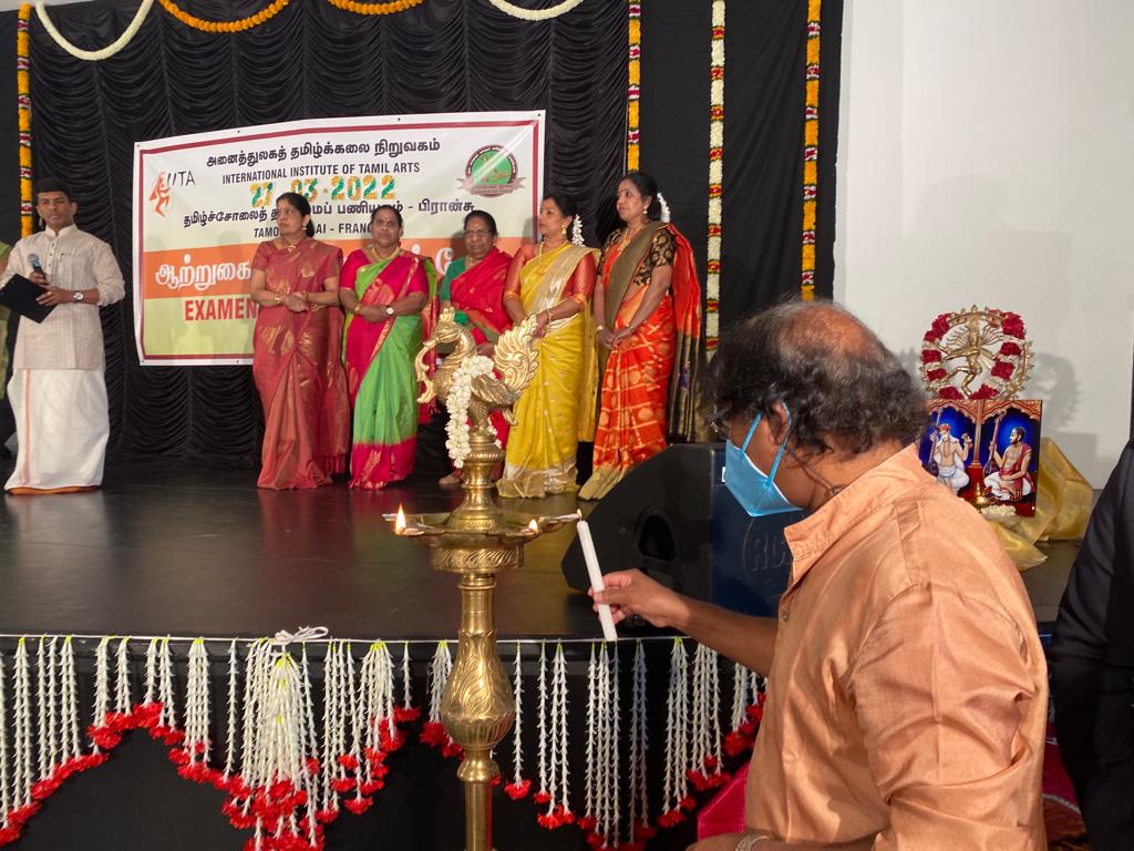 தொடர்ந்து மங்கல விளக்கேற்றி வைக்கப்பட்டது. கார்லே கோனேஸ் நகரபிதா M. Benit Jiménez உதவி நகரபிதா திருவாட்டி. Mme. Marie Claude Lalliaud மற்றும் மாநகரசபையின் அனைத்து கட்டமைப்புக்களின் பொறுப்பாளர், மாநகரசபை உறுப்பினர் இவர்களுடன் தமிழர் ஒருங்கிணைப்புக்குழு பிரான்சின் பொறுப்பாளர் திரு. மகேஸ், தமிழ்ச்சோலை தலைமைப்பணியகப் பொறுப்பாளர் திரு.ஜெயக்குமாரன் இன்றைய தேர்வின் பரதநாட்டிய நடுவர்களான முனைவர். திருவாட்டி. சந்திரவதனி விஐயசுந்தரம் அவர்கள், முதுகலைமாணி திருவாட்டி.அனுசா சற்குணநாதன் அவர்கள், முதுகலைமாணி திருவாட்டி. ஜெயந்தி யோகலிங்கம் அவர்கள் ஆகியோருடன் இசை நடுவர்களான இசைக்கலைமணி திருமதி. ஆறுமுகம் ஜெகசோதி அவர்கள், இசைக்கலைமணி திருவாட்டி. கௌரி ஜெகசோதி அவர்கள், இசைக்கலைமணி. திருவாட்டி சாமிளா நடேசன் அவர்களும் ஏற்றி வைத்தனர்.