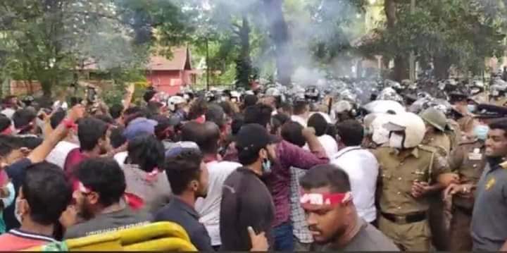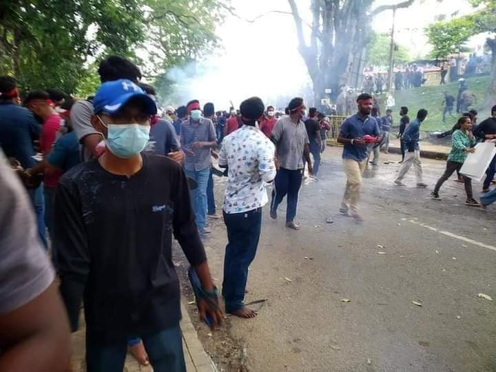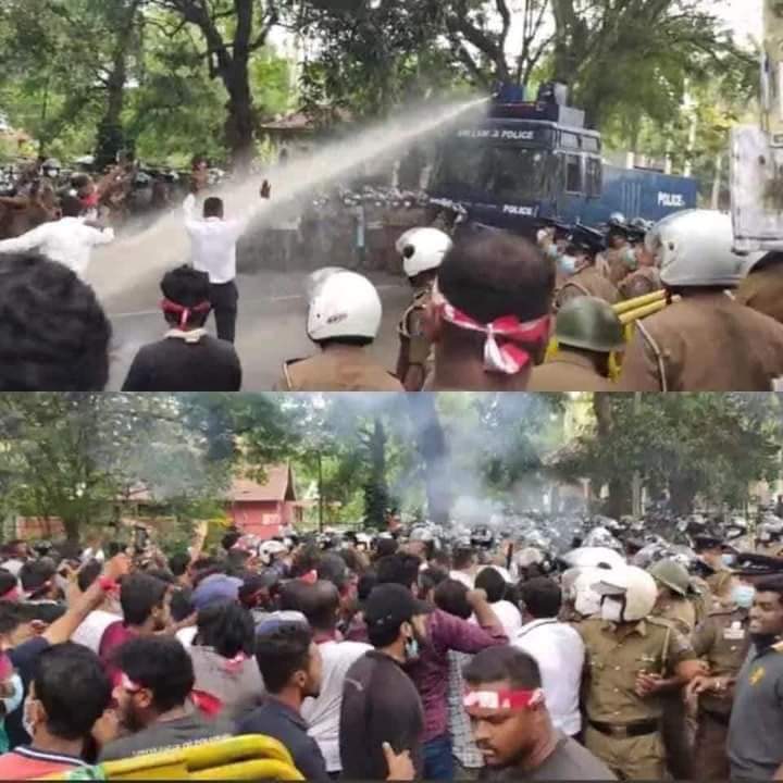ஈழச்செய்திகள்சிறப்பு செய்திகள் கண்டி பேராதனைப் பல்கலைக்கழக மாணவர்களும் அரசை எதிர்த்துப் போராட்டம்! By Admin - April 3, 2022 0 341 கண்டி பேராதனைப் பல்கலைக்கழக மாணவர்கள் பல்கலைக்கழகத்திற்கு முன்பாக இன்று அரசுக்கு எதிராகப் பாரிய ஆர்ப்பாட்டத்தில் ஈடுபட்டனர். ஆர்ப்பாட்டக்காரர்கள் மீது காவல்துறையினர் கண்ணீர் புகைத் தாக்குதல் மேற்கொண்டனர்.