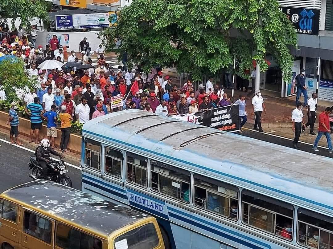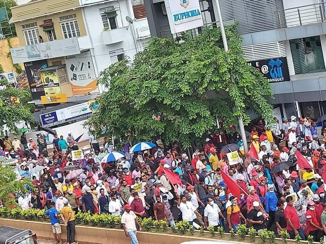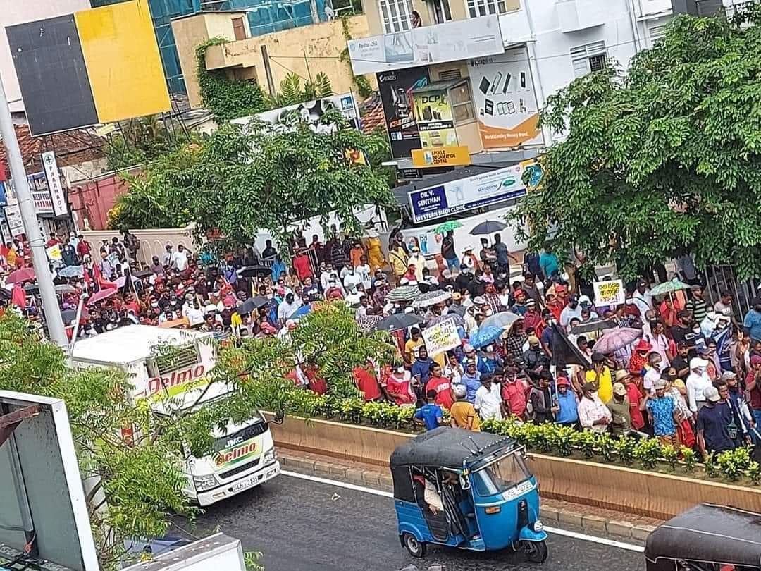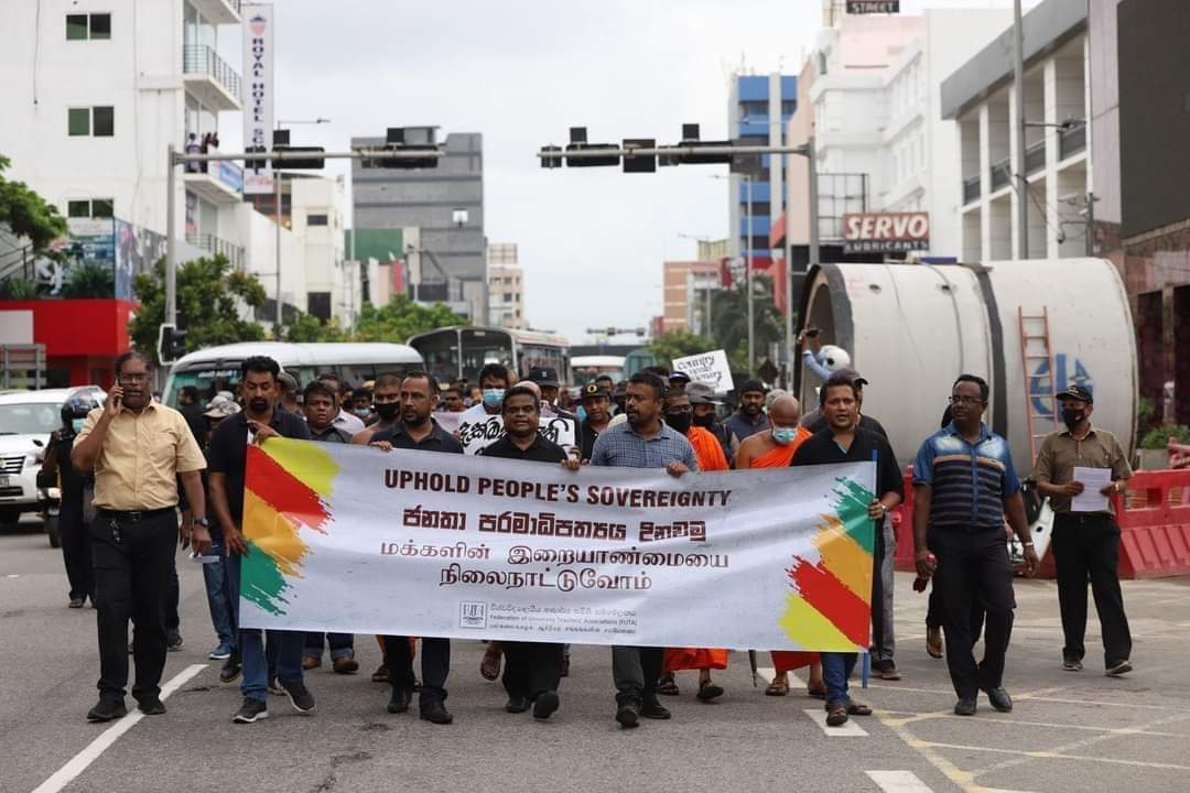 சிறிலங்கா அரசை கண்டித்து, பேராசிரியர் ஷியாம் பன்னெஹேகா தலைமையிலான பல்கலைக்கழக ஆசிரியர் சங்கங்களின் சம்மேளனத்தின் உறுப்பினர்கள் மற்றும் கல்வியாளர்கள் இப்போது கொழும்பில் காலி வீதி வழியாக காலி முகத்திடலில் அமைந்துள்ள பாரிய போராட்டத் தளத்திற்கு பேரணியாகச் சென்றுள்ளனர்.