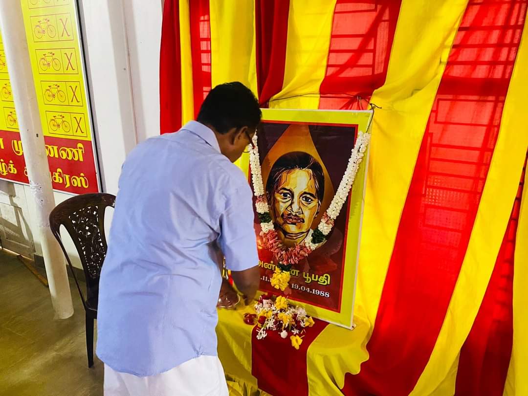 தமிழீழத் தாயவள் நாட்டுப்பற்றாளர் தியாகி அன்னை பூபதி அவர்களின் 34 ஆம் ஆண்டு நினைவேந்தல் இன்று (19.04.2022) செவ்வாய்க்கிழமை தமிழ்த் தேசிய மக்கள் முன்னணியின் யாழ். தலைமைச் செயலகத்தில் நினைவேந்தப்பட்டுள்ளது.