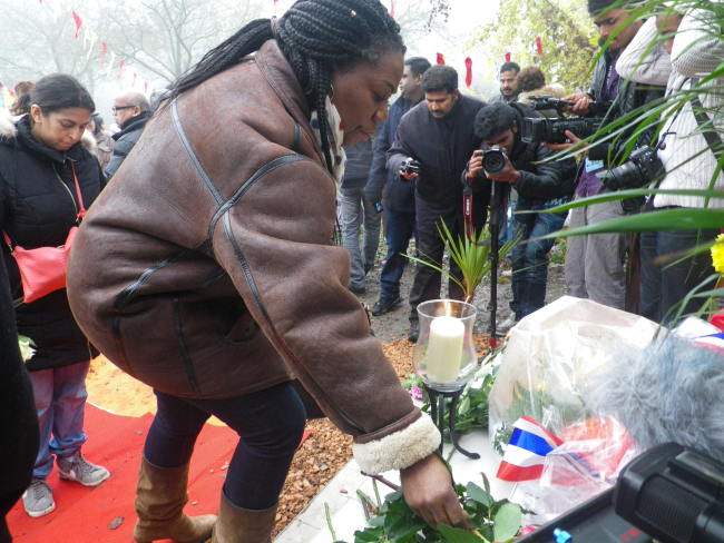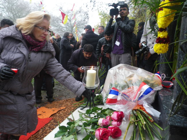 14.12.2014 கடும்குளிர், பனிமூட்டத்திற்கு மத்தியில் குறிப்பிட்ட நேரத்தில் சரியாக 11.00 மணிக்கு பொதுச்சுடரினை எதிர்க்கட்சியின் மாநகர முதல்வர் மதிப்புக்குரிய Maire Geoges Mothron ( UMP) கட்சி அவர்கள் ஏற்றி வைக்க அகவணக்கம் செலுத்தப்பட்டது.