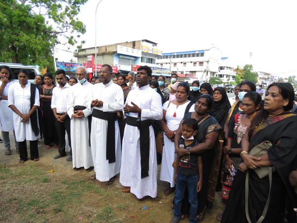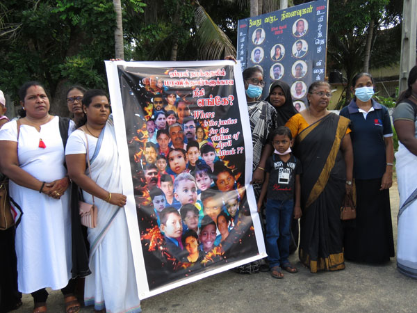 இதனை தொடர்ந்து மட்டு கல்லடி பாலத்துக்கு அருகில் தேவாலய குண்டு வெடிப்பில் உயிரிழந்தவர்களின் உறவுகளால் அமைக்கப்பட்ட தூபியில் பெண்கள் வலையமைப்பின் ஏற்பாட்டில் உயிரிழந்தவர்களின் உறவுகள் மலர்வைலையம் வைத்து சுடர் ஏற்றி அஞ்சலி செலுத்தியதுடன் உயிரிழந்தவர்களுக்கு நீதிவேண்டி ஆர்ப்பாட்டத்தில் ஈடுபட்டனர்.