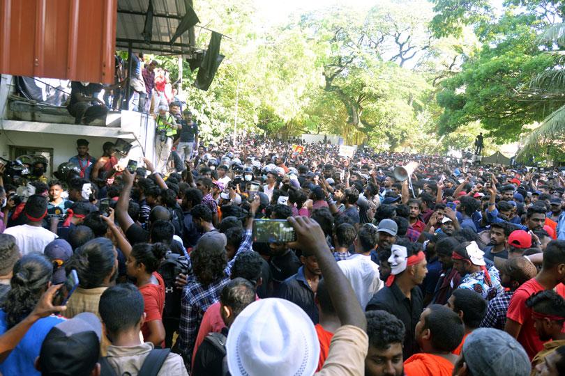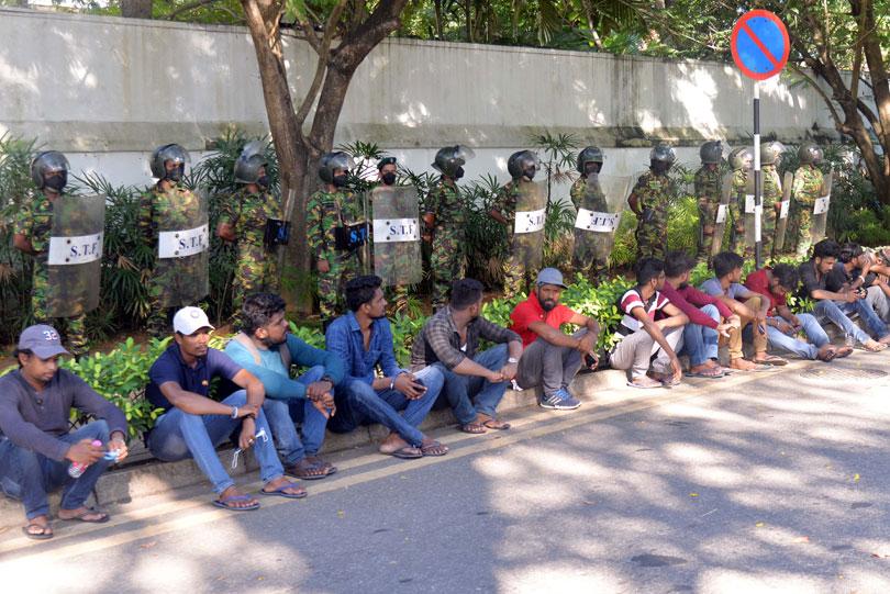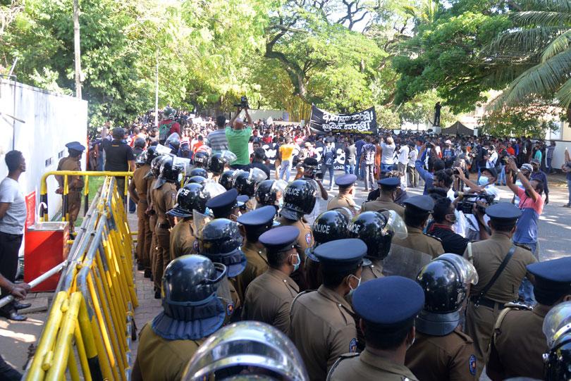 இந்நிலையில், போராட்டம் நடைபெறும் காலிமுகத் திடலுக்குள் பேரணியாக செல்ல முடியாதவாறு பாதுகாப்பு வேலிகள் அமைக்கப்பட்டன. இந்நிலையில், பிரதமர் மஹிந்த ராஜபக்ஷவின் இல்லம் அமைந்துள்ள விஜயராமை மாவத்தையில் ஆயிரக்கணக்கான இளைஞர்கள் ஒன்றுகூடினர்.