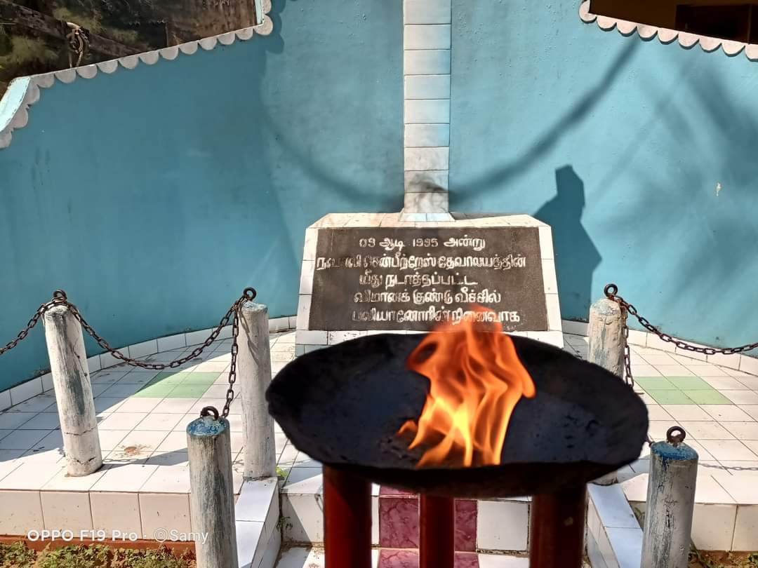 யாழ்ப்பாணம் – நவாலி புனித பீட்டர்ஸ் தேவாலயத்தில் 1995 யூன் மாதம் 9ம் திகதி சிறிலங்கா அரசபயங்கரவாதம் நடாத்திய விமானக்குண்டு வீச்சில் 147 பொதுமக்கள் கொல்லப்பட்டமை குறிப்பிடத்தக்கது.