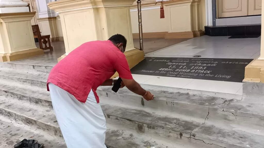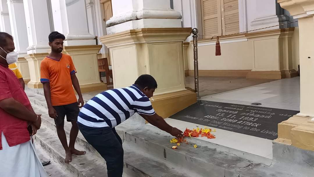 ஈழச்செய்திகள்சிறப்பு செய்திகள் குருநகர் புனித யாகப்பர் ஆலயத்தில் நினைவேந்தல்! By Admin - May 15, 2022 0 302 குருநகர் புனித யாகப்பர் ஆலயத்தில் விமானக்குண்டு வீச்சில் படுகொலை செய்யப்பட்ட நினைவுத்தூபியில் தமிழ்த்தேசிய மக்கள் முன்னணியின் தலைவர் கஜேந்திரகுமார் மற்றும் உறுப்பினர்கள் அஞ்சலி செலுத்தினர்.