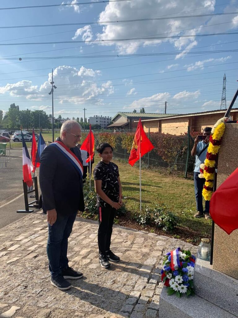 லெப்ரினன்ட் சங்கர் அவர்களின் நினைவுத் தூபிக்கு முன்பாக மலர்வணக்கத்தை பாராளுமன்ற உறுப்பினர் பிரான்சுவா புப்போனி அவர்களும் மேற்கொண்டிருந்த அதேவேளை நினைவுரையையும் வழங்கியிருந்தார்.