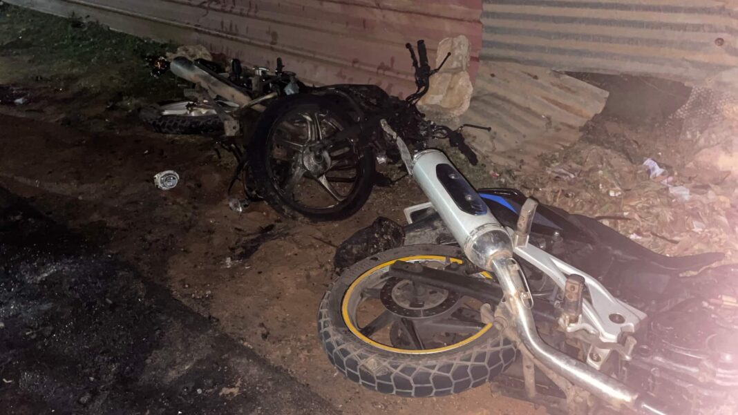 நேற்று இரவு 10.30 மணியளவில் இந்த விபத்து நடந்துள்ளது. இரு உந்துருளிகள் நேருக்கு நேர் மோதி விபத்துக்குள்ளானதில் உந்துருளிகள் தீப்பற்றி எரிந்தன.
