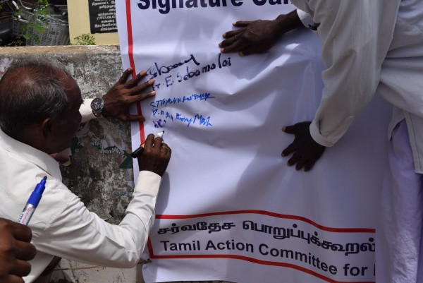 மன்னார் பிரஜைகள் குழு மற்றும் சர்வதேச பொறுப்புக்கூறல் பொறிமுறையும் தமிழர் செயற்பாட்டுக்குழுவும் இணைந்து குறித்த கையெழுத்து வேட்டையினை ஆரம்பித்து வைத்துள்ளனர்.