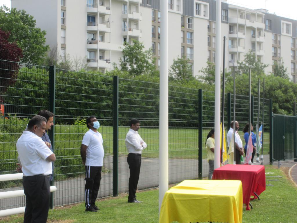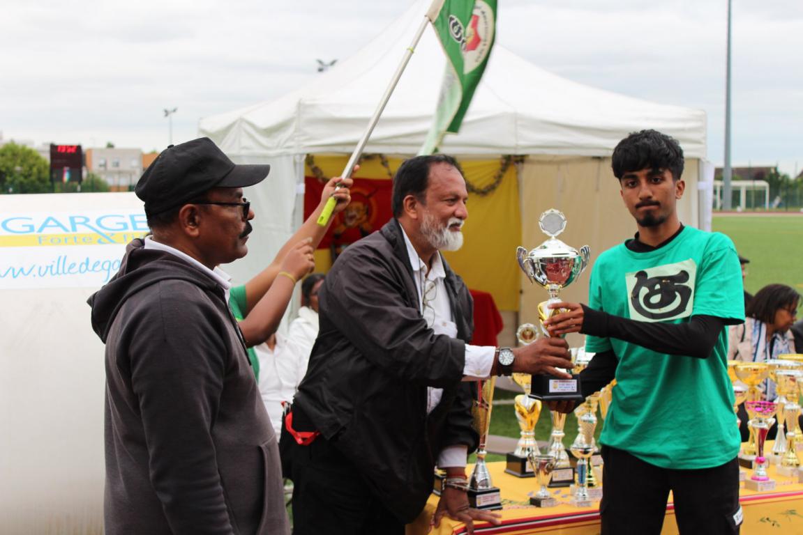 Adioint Marie Madame MORGADO Déléguée aux Associations, Monsieur Mustapha MOKHTARI , Madame Berard GUNOT, Monsieur Francisque DONGAL ஆகியோர் கலந்து கொண்டனர்; வெற்றி பெற்றவர்களுக்கு வெற்றிகிண்ணங்கள் வழங்கி மதிப்பளித்தனர். இவர்களுடன் தமிழர் ஒருங்கிணைப்புக்குழு நிதிப்பொறுப்பாளர் திரு செவ்வேள், மெய்வல்லுநனர் போட்டி முகாமையாளர் திரு. ராஐலிங்கம், தமிழ்ச்சோலை தலைமைப்பணியக செயற்பாட்டாளர் திரு. அகிலன், 95 தமிழர் விளையாட்டுக்கழக போட்டிச் செயலாளர், மேலாளர் திரு. காணிக்கைநாதன், 95 தமிழர் விளையாட்டுக்கழகப் பொறுப்பாளர் திரு. யூட்ஸ் றமேஸ் அவர்கள், உதவியாக கடமையாற்றிய திருமதி. பிறேமிளா போன்றோரும் வெற்றிக்கிண்ணங்கள் வழங்கி மதிப்பளித்தனர். 9.00 மணியளவில் முறையே கழகக்கொடிகள் அதன் பொறுப்பாளர்களால் இறக்கி வைக்கப்பட தேசியக்கொடிகள் இறக்கி வைக்கப்பட்டு நம்புங்கள் தமிழீழம் பாடல் இசைக்கவிடப்பட்டு “தமிழரின் தாகம் தமிழீழத்தாயகம்” என்ற தாரகமந்திரம் உச்சரித்து நிறைவுகண்டது.