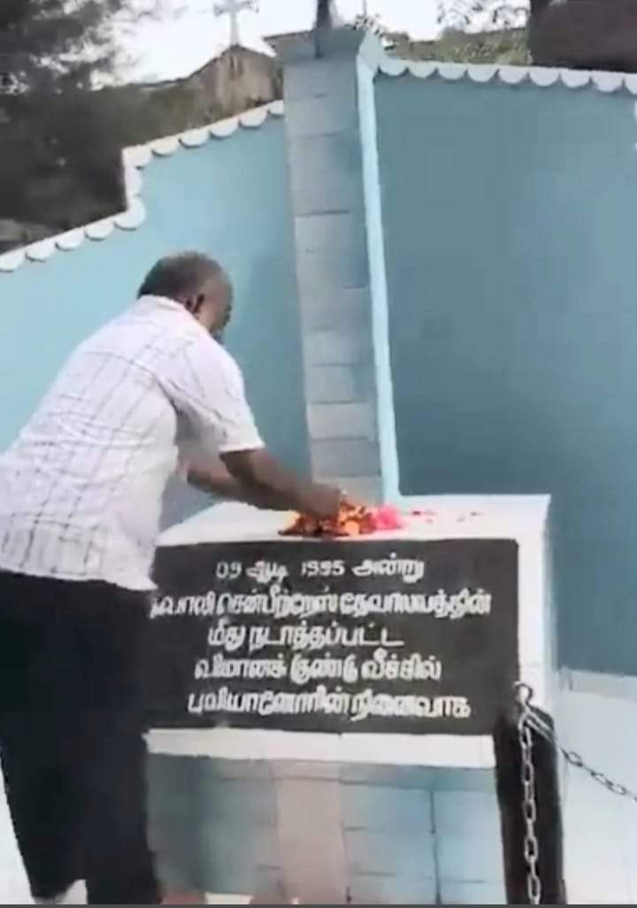 யாழ்.நவாலி சென் பீற்றர் தேவாலயத்தில் படுகொலை செய்யப்பட்டவர்களின் நினைவாக அமைக்கப்பட்ட நினைவுத் தூபியில் தமிழ்த்தேசிய மக்கள் முன்னணி யின் ஏற்பாட்டில் அஞ்சலி செலுத்தப்பட்டது.