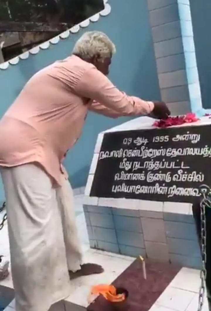 நவாலி சென் பீற்றர்ஸ் தேவாலயத்தில் கடந்த 1995ஆம் ஆண்டு ஜூலை மாதம் 09ஆம் திகதி சிறிலங்கா விமான படையினர் வீசிய குண்டு வீச்சில் இடம்பெயர்ந்து தேவாலயத்தில் தஞ்சம் புகுந்திருந்த குழந்தைகள் பெண்கள் உள்ளிட்ட 147 இற்க்கும் அதிகமான பொதுமக்கள் படுகொலை செய்யப்பட்டிருந்தனர்.