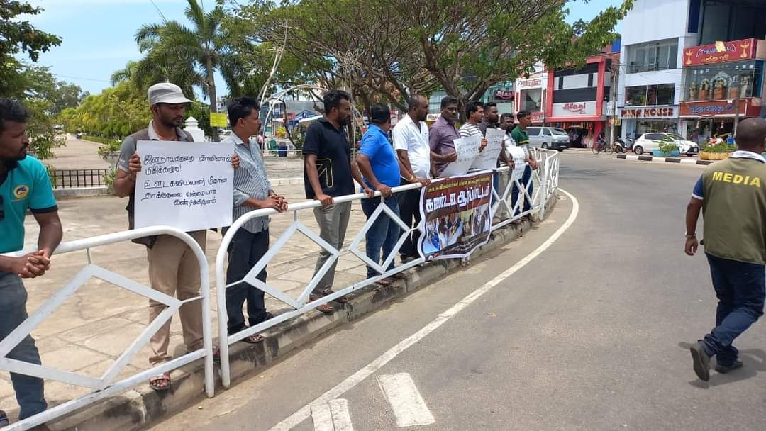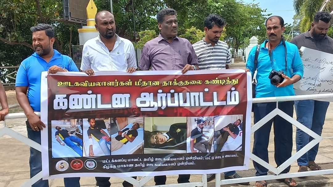 ஈழச்செய்திகள்சிறப்பு செய்திகள் மட்டக்களப்பில் ஊடகவியலாளர் மீதான வன்முறையைக் கண்டித்துப் போராட்டம்! By Admin - July 12, 2022 0 259 இன்று காந்தி பூங்காவின் அருகாமையில் கடந்த 9.07.2022 அன்று ஊடகவியலாளர்கள் தாக்கப்பட்டமையைக்கண்டித்து கண்டனப்போராட்டமொன்று நடைபெற்றது. இப்போராட்டத்தை மட்டு ஊடகமையம் மற்றும் கிழக்கு ஊடகவியலாளர் ஒன்றியம் ஏற்பாடு செய்திருந்தது.