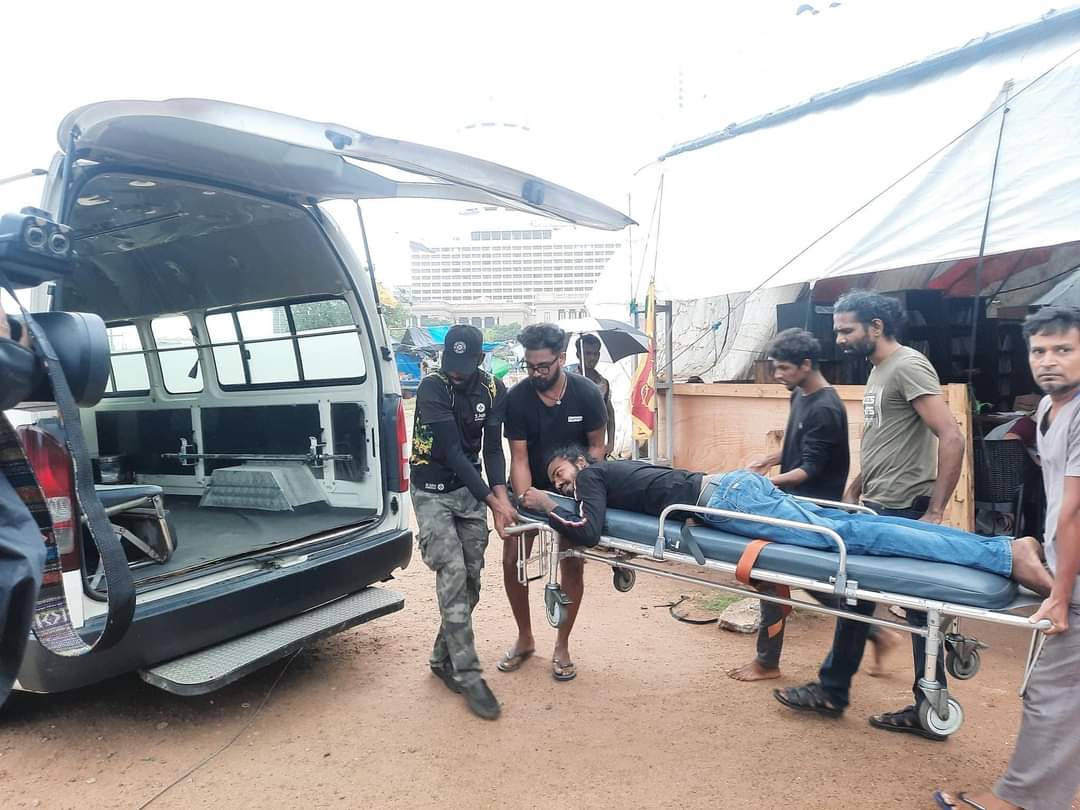 “ஜனாதிபதி செயலகத்திற்கு அருகிலுள்ள காலி முகத்திடலில் ஆர்ப்பாட்டக்காரர்கள் மீது தாக்குதல் நடத்தப்பட்டுள்ளதாக தனக்கு அறிவிக்கப்பட்டுள்ளது. சட்டத்தரணிகள் சங்கத்தின் நுவன் போபகே உள்ளிட்ட போராட்டக்காரர்கள் கைது செய்யப்பட்டுள்ளதாகவும் போராட்டகாரர்கள் தாக்கப்பட்டதாகவும் தெரிவிக்கப்பட்டுள்ளது.