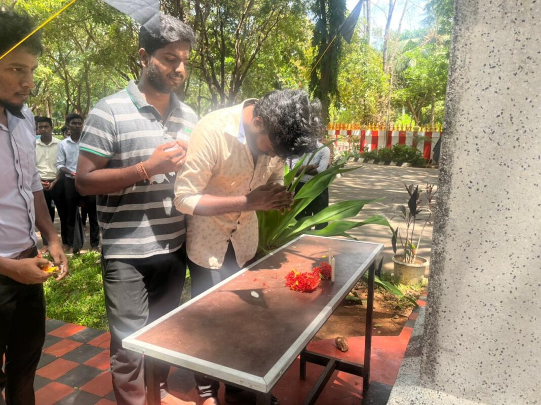இதன் பொழுது பல்கலைக்கழகத்தின் பிரதான நுழைவாயிலின் அருகே அமைந்துள்ள யாழ் பல்கலைக்கழகத்தின் பிரதான கொடிக்கம்பத்தில் மாணவர்களால் கறுப்பு கொடியேற்றப்பட்டு அரைக்கம்பத்தில் பறக்கவிடப்பட்டது.