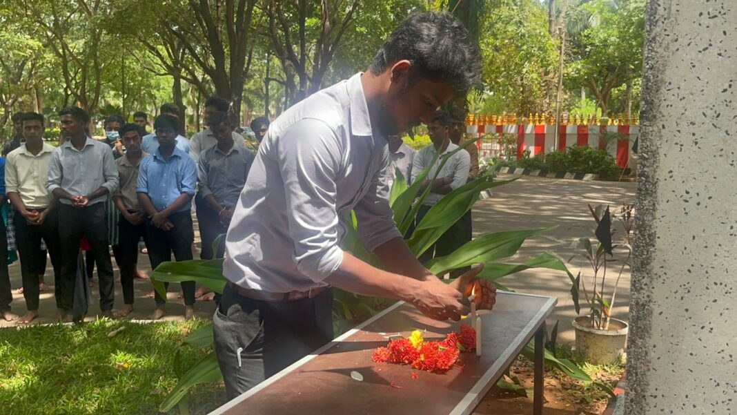 இதனையடுத்து பல்கலைக்கழக பிரதான தூபி வளாகத்தில் கறுப்பு ஜீலை நினைவுருவ படத்திற்கு மாணவர்களால் ஈகைச் சுடரேற்றப்பட்டதோடு ,மலரஞ்சலியுடன் அகவணக்கம் செலுத்தப்பட்டது.மேலும் 1983 கறுப்பு ஜூலை வாரத்தில் தமிழிர்களுக்கு இழைக்கபட்ட அநீதிகள் தொடர்பான நினைவுரையும் இடம்பெற்றது.