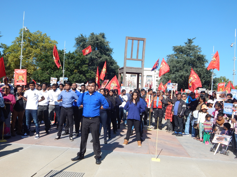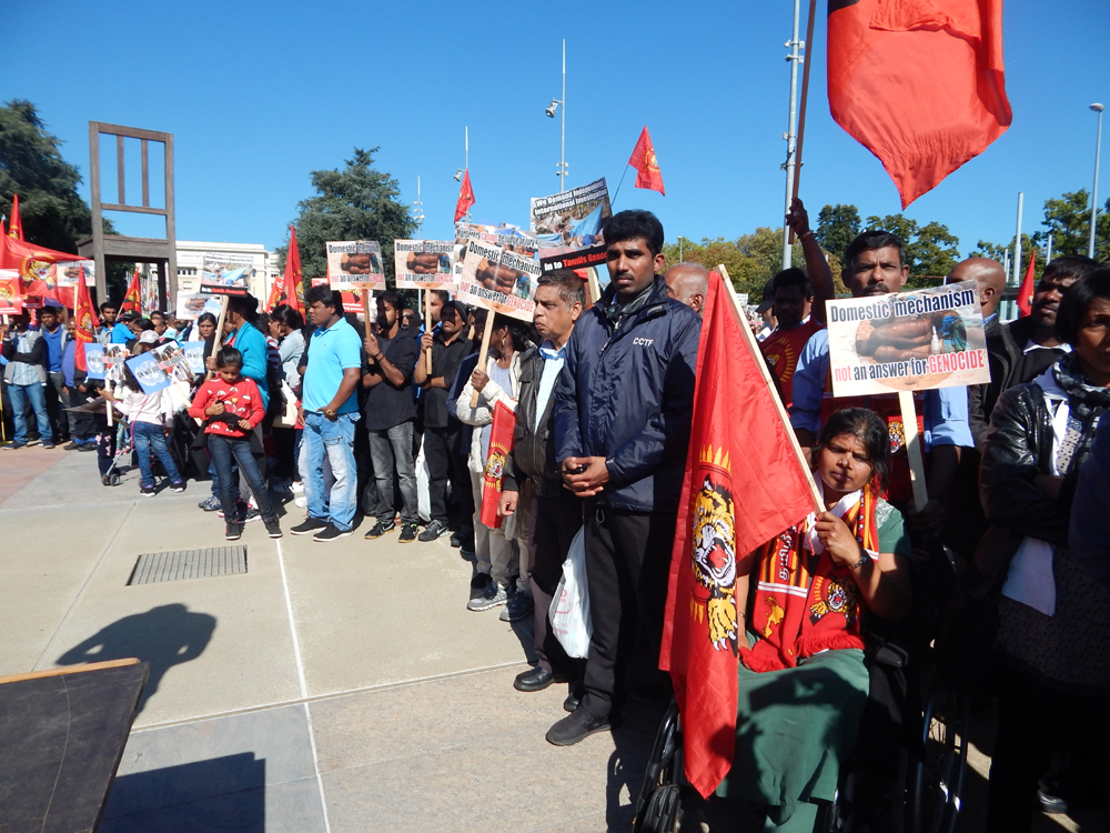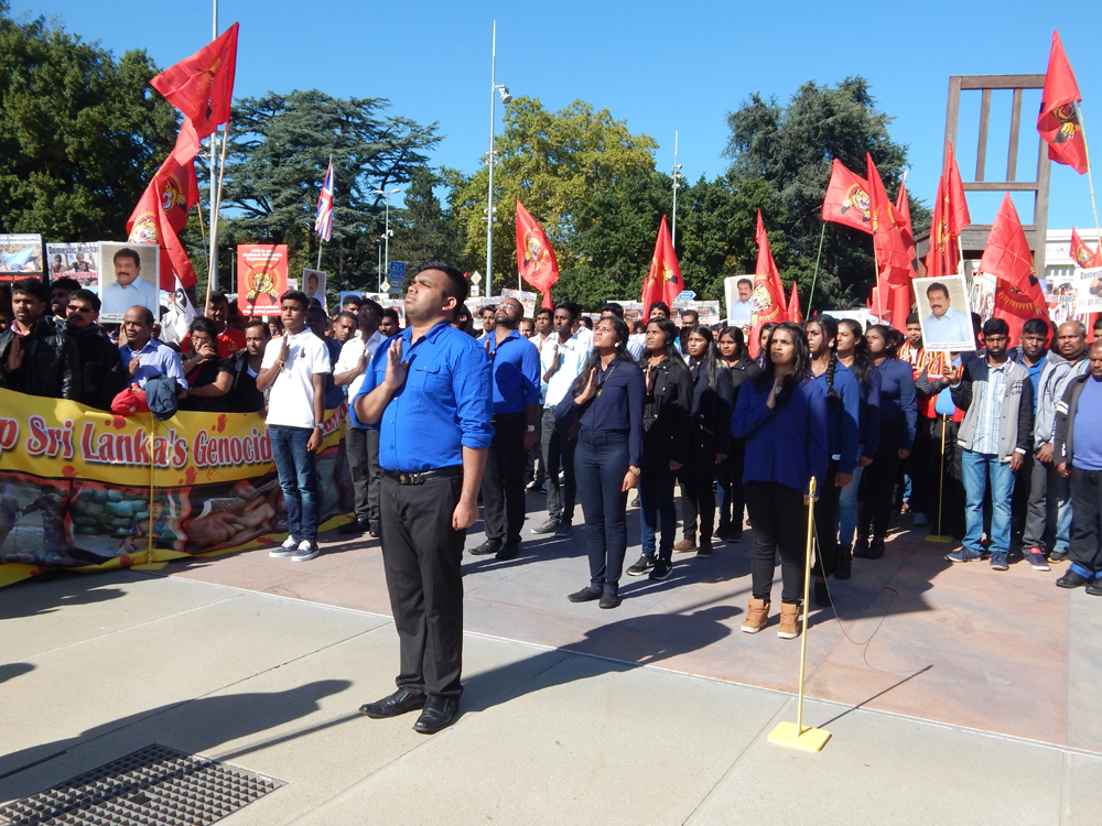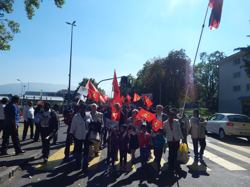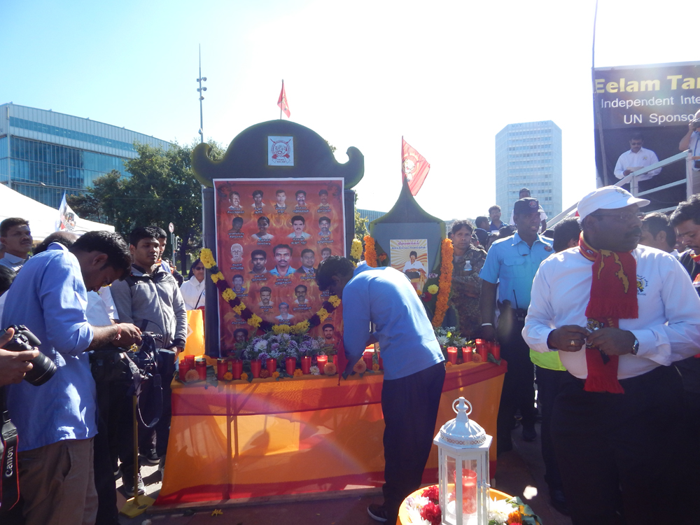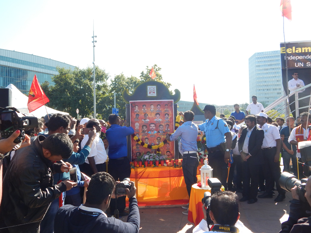 ஐக்கிய நாடுகள் சபை முன்றலில் ஈகைப் பேரொளி முருகதாசன் திடலில் முடிவடைந்த பேரணியைத் தொடர்ந்து, அங்கு மாபெரும் கவனயீர்ப்பு நிகழ்வு ஏற்பாடு செய்யப்பட்டிருந்தது. சுவிஸ் தமிழர் ஒருங்கிணைப்புக் குழுவின் ஏற்பாட்டில் நடைபெற்ற இந்நிகழ்வில், பொதுச்சுடர் ஏற்றல், தமிழீழத் தேசியக்கொடி ஏற்றல், அகவணக்கம் என்பவற்றைத் தொடர்ந்து சுடர்வணக்கம் இடம்பெற்றது.