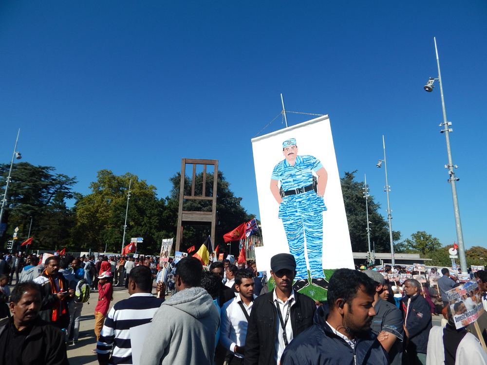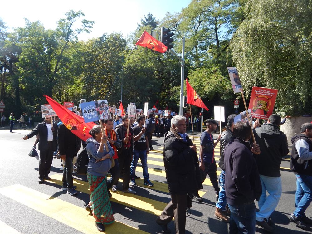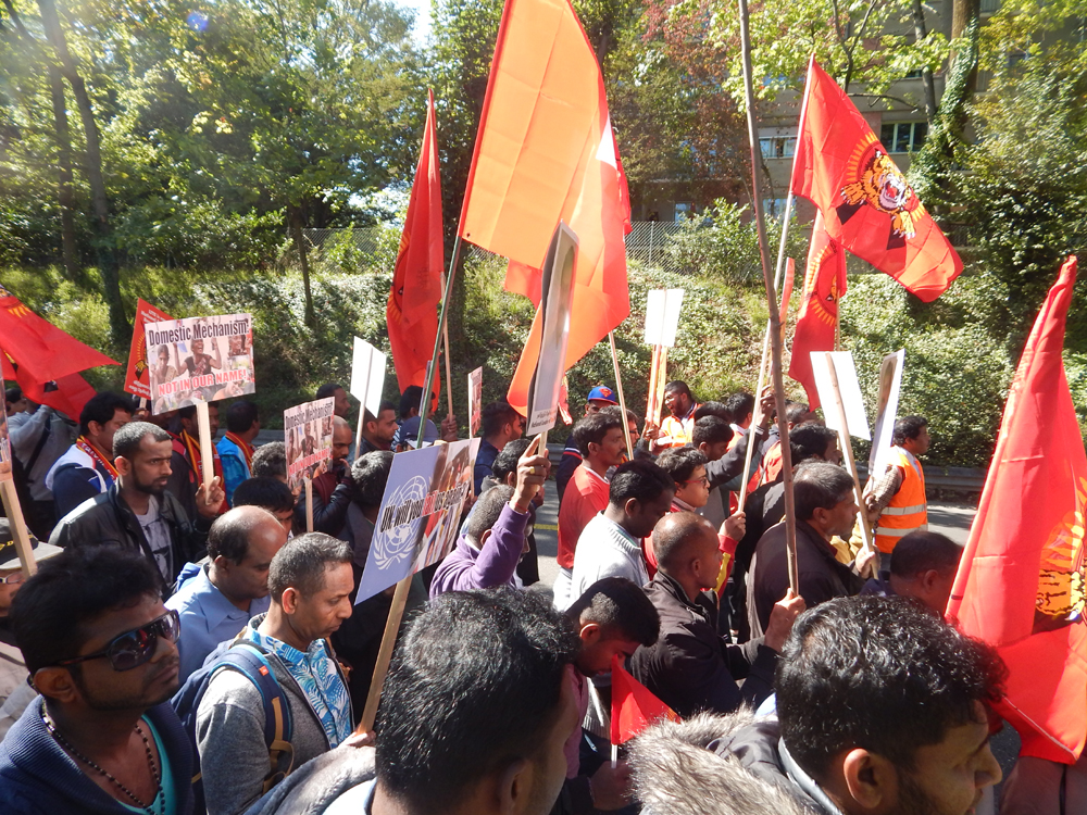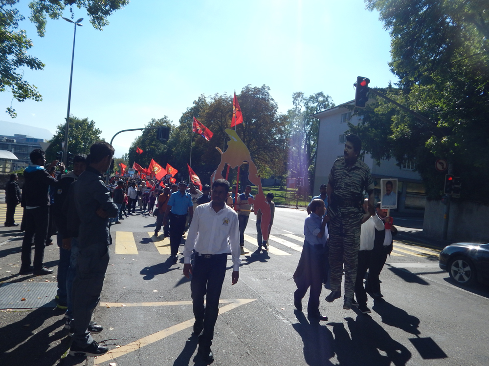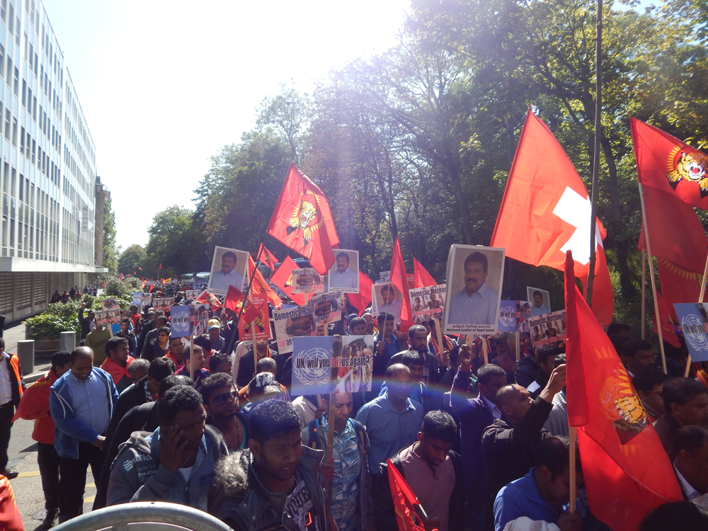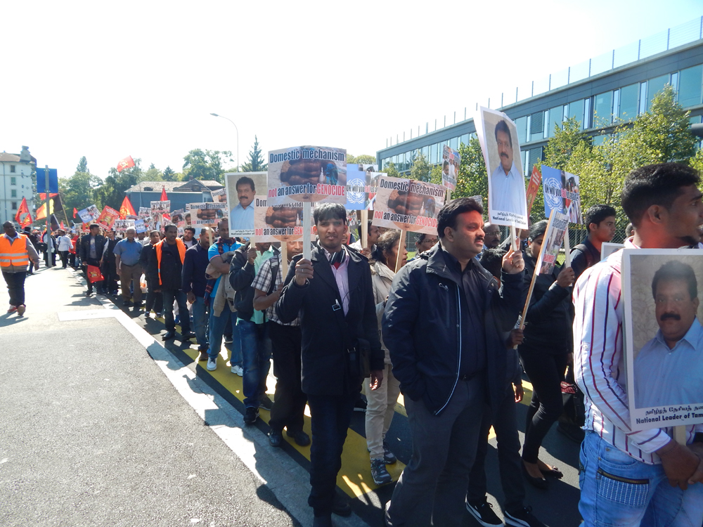 ஐக்கிய நாடுகள் சபை முன்றலில் ஈகைப் பேரொளி முருகதாசன் திடலில் முடிவடைந்த பேரணியைத் தொடர்ந்து, அங்கு மாபெரும் கவனயீர்ப்பு நிகழ்வு ஏற்பாடு செய்யப்பட்டிருந்தது. சுவிஸ் தமிழர் ஒருங்கிணைப்புக் குழுவின் ஏற்பாட்டில் நடைபெற்ற இந்நிகழ்வில், பொதுச்சுடர் ஏற்றல், தமிழீழத் தேசியக்கொடி ஏற்றல், அகவணக்கம் என்பவற்றைத் தொடர்ந்து சுடர்வணக்கம் இடம்பெற்றது.
