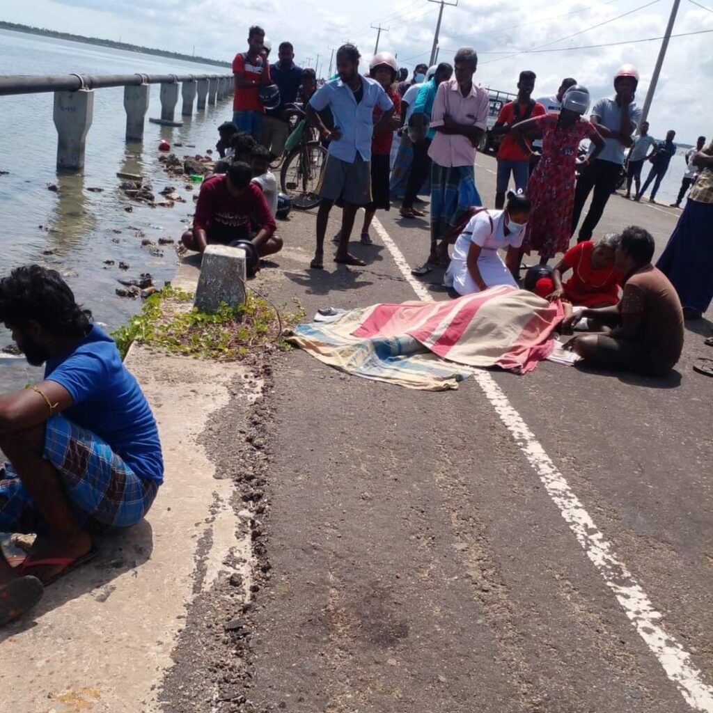 யாழ்ப்பாணம் காரைநகரில் இருந்து மூளாய் வைத்தியசாலைக்கு உந்துருளியின் பின்னால் இருந்து பயணித்த கர்ப்பிணிப்பெண் ஒருவர் பொன்னாலை பாலத்தில் திடீரென உந்துருளியில் இருந்து தவறி விழுந்து தரையில் தலை அடிபட்டு உயிரிழந்துள்ளார்.