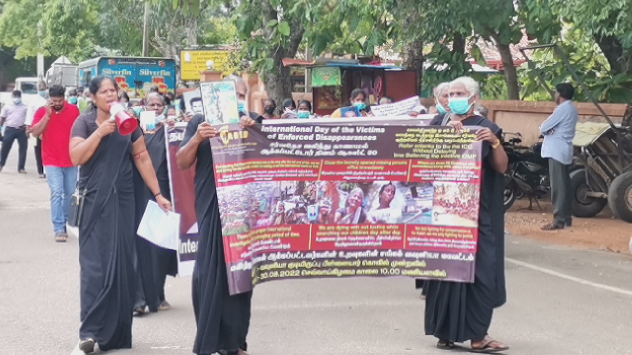 சர்வதேச காணாமல் ஆக்கப்பட்டோர் தினமான இன்று (30) காணாமல் ஆக்கப்பட்ட உறவுகளிற்கு நீதி கோரியே குறித்த ஆர்ப்பாட்ட பேரணி முன்னெடுக்கப்பட்டது.