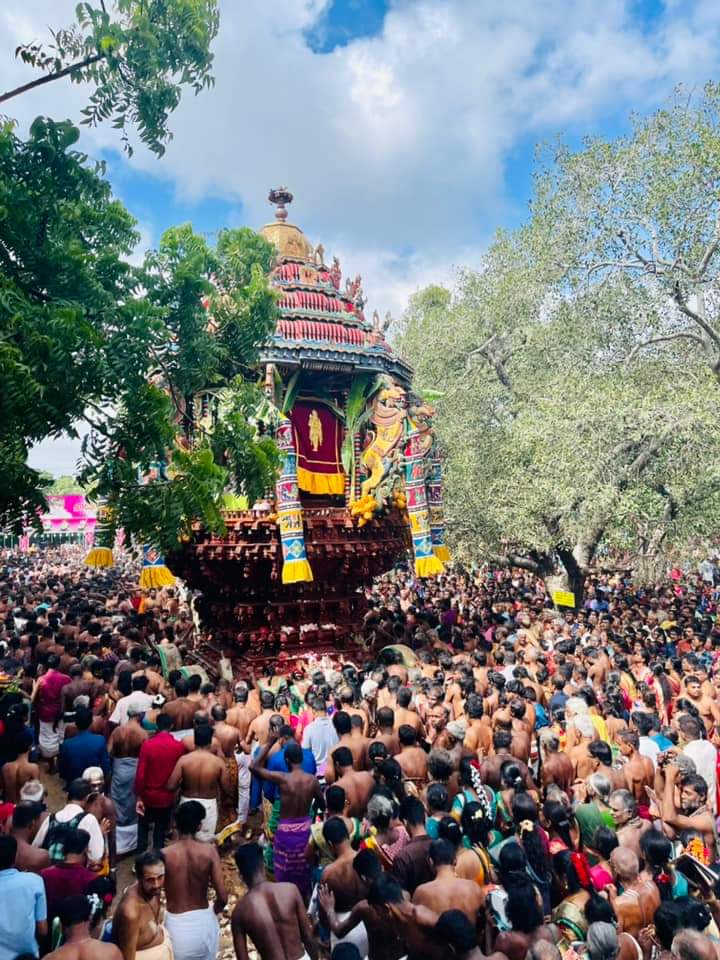 தொண்டைமானாறு செல்வச் சந்நிதி முருகன், ஆயிரக்கணக்கான பக்தர்கள் புடைசூழ இன்று தேரேறி வலம் வந்தார்.