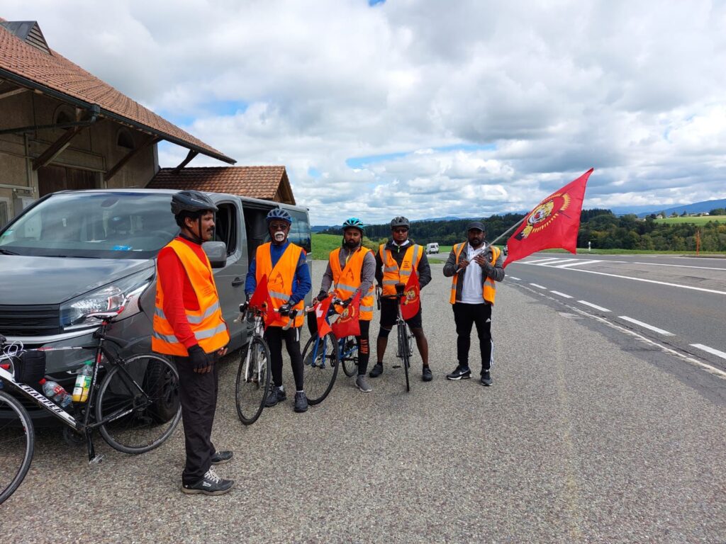 தமிழீழ மண்ணில் நிகழ்ந்த தமிழின அழிப்பிற்கு அனைத்துலக சுயாதீன விசாரணையினை வலியுறுத்தியும் தமிழீழமே தமிழர்களுக்கான இலக்கு என முழங்கிய படி இன்றோடு 16 நாளாக ஈருருளிப்பயண அறவழிப்போராட்டம் தொடர்கின்றது. அரசியற் சந்திப்புக்கள் மூலம் பல முக்கிய மைங்களில் எம் வேணவாக்களினை பறைசாற்றிக் கொண்டிருக்கின்றோம். சிறிலங்காப் பேரினவாத அரசு தான் புரிந்த தமிழின அழிப்பில் இருந்து தன்னை தற்காத்துக் கொள்ளும் வகையில் பல கபட நாடகங்களை நடத்தும் முயற்சி பலன் பெறாத சூழலே நிலவுகின்றது.அதன் அடிப்படையிலே நிகழ்ந்த சந்திப்புக்களும் ஆரோக்கியமான பெறுபேறுகளையே தந்திருக்கின்றன. 51வது மனித உரிமைகள் ஆணைக்குழுவின் கூட்டத்தொடரில் சிறிலங்காப் பேரினவாத அரசினை அனைத்துலக குற்றவியல் நீதி மன்றத்தில் (ICC) நிறுத்த நாம் அனைவரும் ஓங்கி குரல் கொடுக்க வேண்டும். கடுமையான ஈருருளிப்பயணவழி போராட்டத்தில் மனித நேய செயற்பாட்டாளர்கள் தம் உடல் உபாதைகளையும் பொருட்படுத்தாது குளிர் மழை காற்று எனும் இயற்கையின் சவாலான கால நிலையிலும் இயங்கி வருகின்றார்கள். இன்று லவுசாண் மாநிலத்தினை வந்தடைந்த போராட்டம் ஐ.நாவின் எல்லையினை அண்மிக்க நாளை (18/09/2022) பேரெழுச்சியோடு தொடர இருக்கின்றது. தியாக தீபம் லெப்.கேணல் திலீபன் அண்ணாவின் அதி உச்ச ஈகத்தினை ஒரு கணம் எண்ணிப்பார்க்கின்றோம். எம் இலக்குகள் நிறைவேற நாம் கொண்ட போராட்ட வடிவங்களோ ஏராளம். அதுவே எம் தேசியத்தலைவரின் வழிகாட்டலும். எனவே அனைத்து தமிழ் உறவுகளும் எதிர்வரும் 19/09/2022 ஐ.நா முன்றலில் ஈகைப்பேரொளி முருகதாசன் திடலில் பி.ப 14:39 மணியளவில் நடைபெற இருக்கும் கவனயீர்ப்பு போராட்டத்தில் கலந்து கொள்ளுமாறு அன்புரிமையோடு கேட்டுக்கொள்கின்றோம். “மக்கள் புரட்சி வெடிக்கட்டும் சுதந்திர தமிழீழம் மலரட்டும்” – தியாக தீபம் லெப் கேணல் திலீபன்