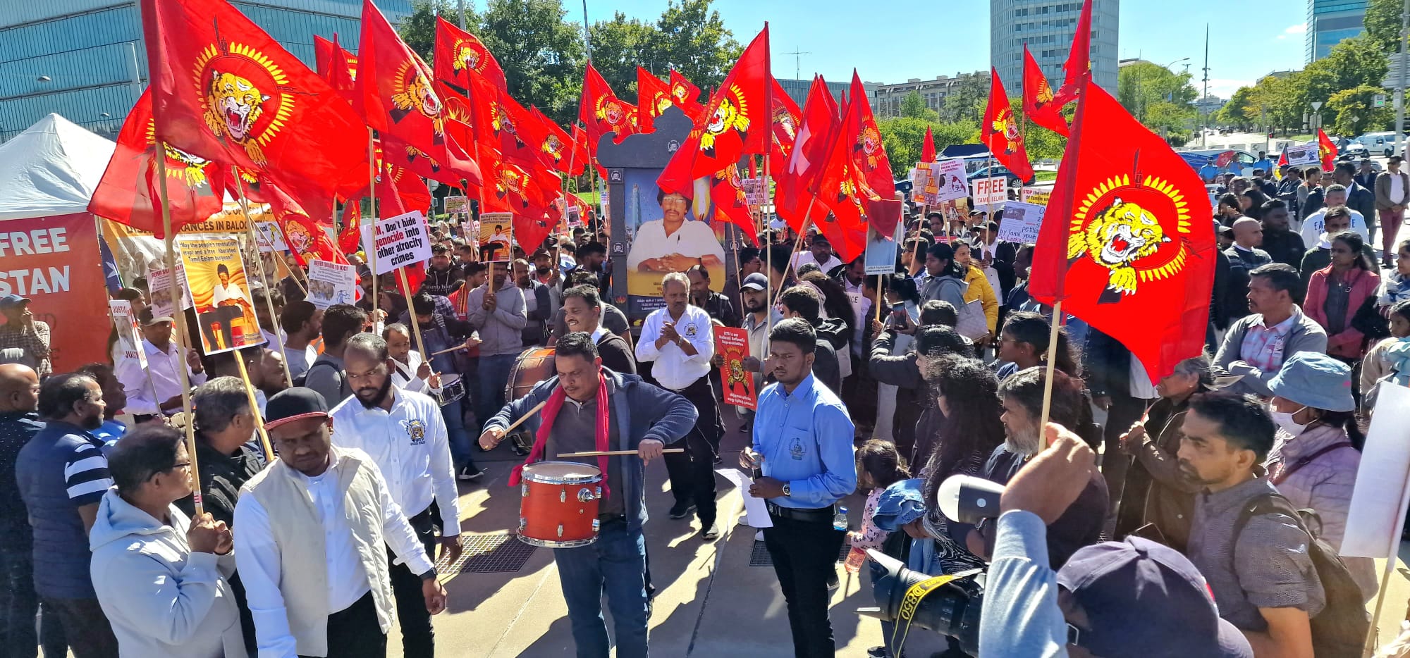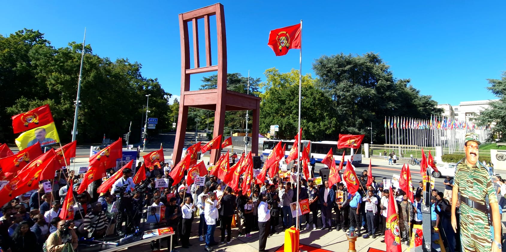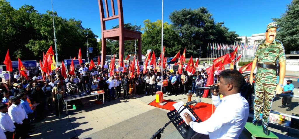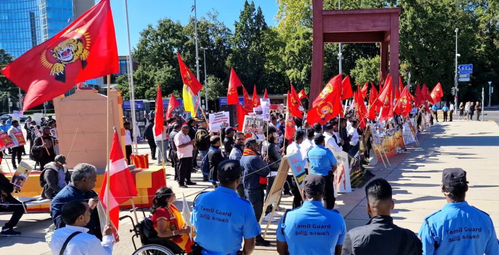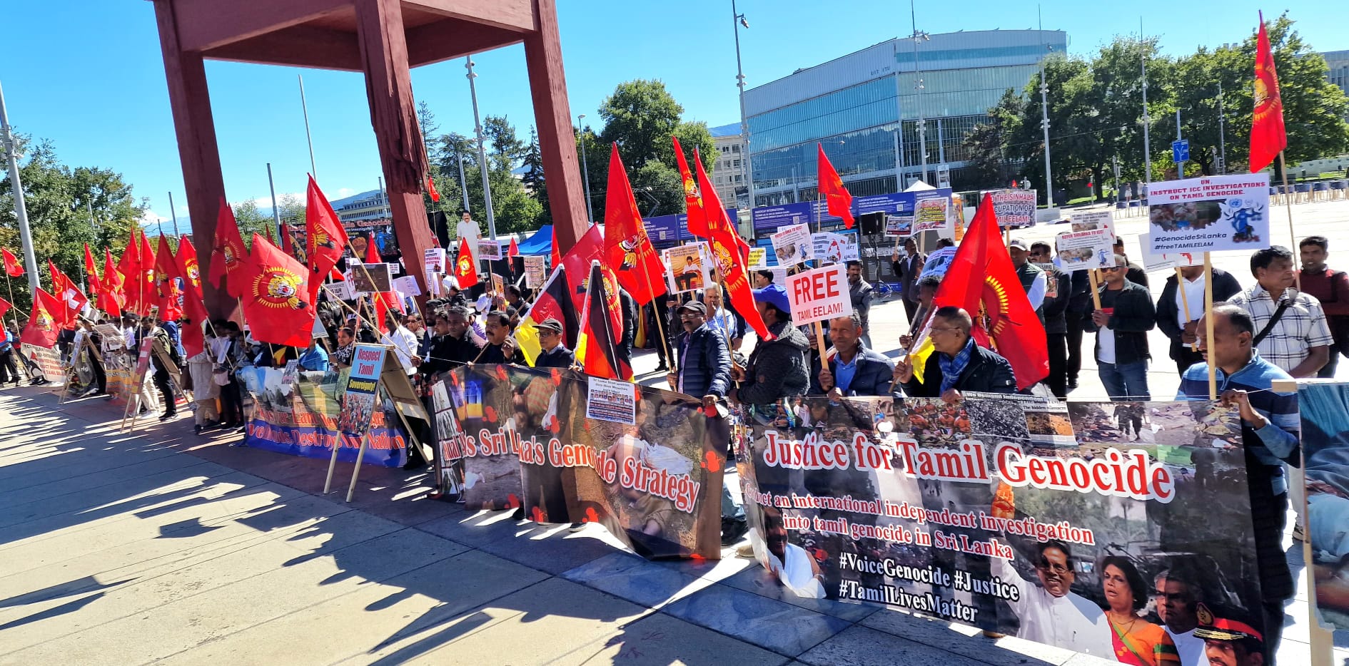 எங்களுக்கான நீதியை எங்களுக்குத் தாருங்கள் என்ற உரிமை முழக்கத்தோடு, சிறிலங்காப் பேரினவாத அரசினால் தொடர்ச்சியாக தமிழ்மக்கள் மீது மேற்கொள்ளப்பட்டுவரும் இன அழிப்பிற்கு நீதிகேட்டு ஐ.நா முன்றல் ஈகைப்பேரொளி முருகதாசன் திடலில் முன்னெடுக்கப்பட்ட கவனயீர்ப்புப் போராட்டத்தில் நூற்றுக்கணக்கான தமிழ்மக்கள் கலந்துகொண்டிருந்தனர்.