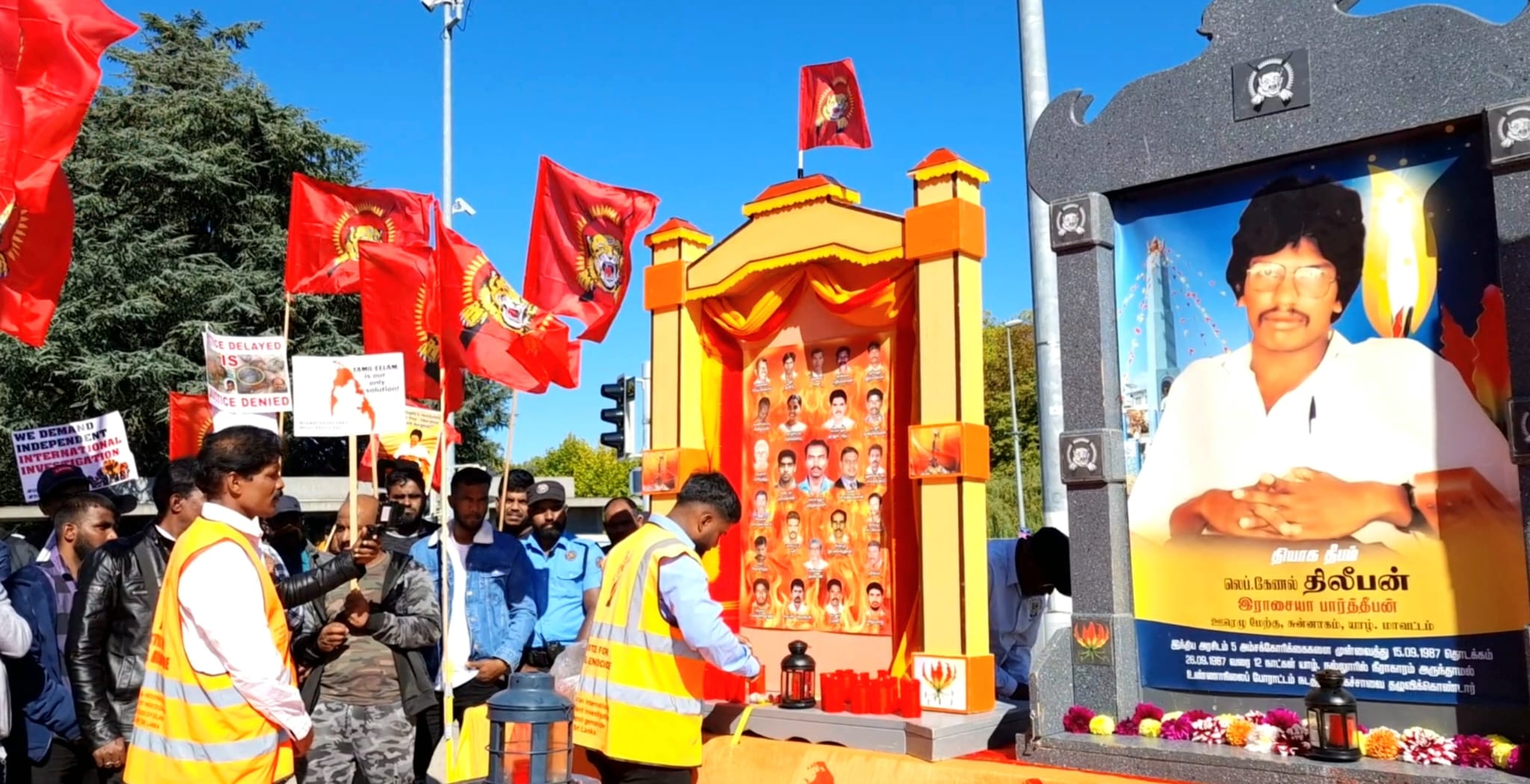 ஈகைப்பேரொளி முருகதாசன் அவர்கள் ஆகுதியாகிய இடத்திலிருந்து தியாகதீபம் லெப். கேணல் திலீபன் அவர்களின் திருவுருவப்படம் பதித்த பீடத்தினை உணர்வாளர்கள் கைகளில் தாங்கியவாறு முன்செல்ல, அதன் பின்னால் மக்கள் அணிவகுத்து மக்கள் புரட்சி வெடிக்கட்டும் சுதந்திர தமிழீழம் மலரட்டும் என்ற கோசத்துடன் ஈகைப்பேரொளி செந்தில்குமரன் ஆகுதியாகிய இடத்தில் அமைக்கப்பட்ட அரங்கினை நோக்கி எடுத்து வந்தனர்.