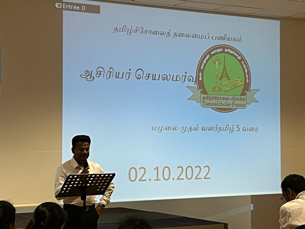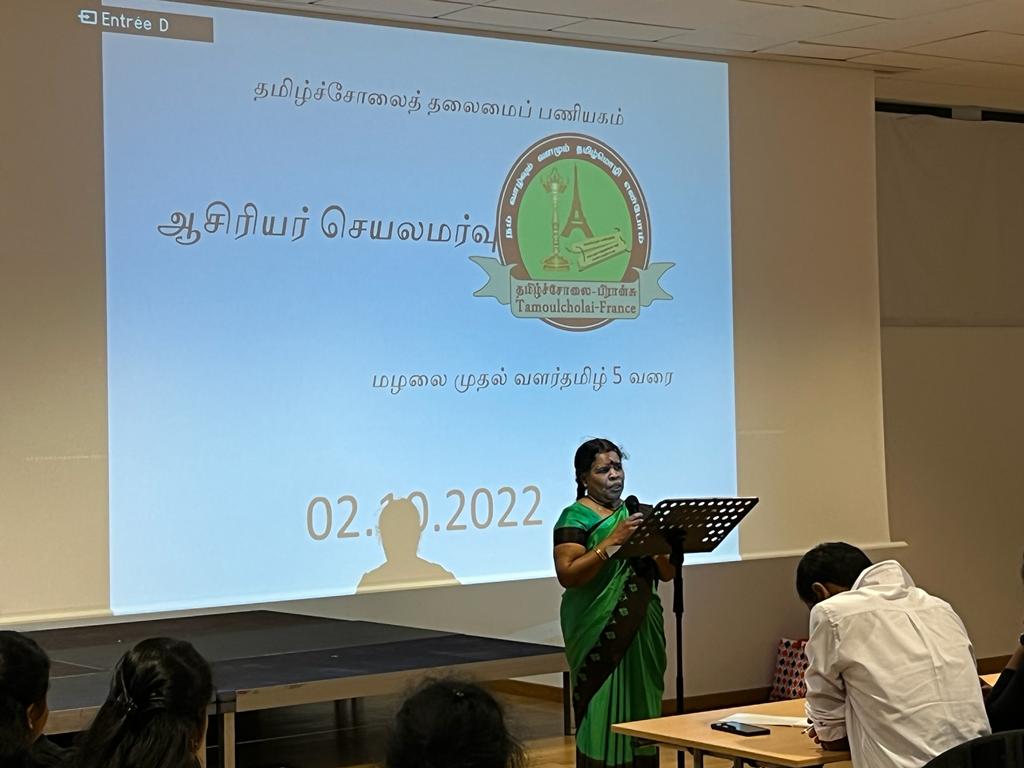 பிரான்சு தமிழ்ச்சோலை தலைமைப் பணியகத்தால் ஆண்டு தோறும் நடாத்தப்படும் தமிழ் ஆசிரியர்களுக்கான செயலமர்வு, 02.10.2022 அன்று கொலோம்ப் நகரில், கொலோம்ப் தமிழ்ச்சங்கத்தின் ஆதரவுடன் நடைபெற்றது.