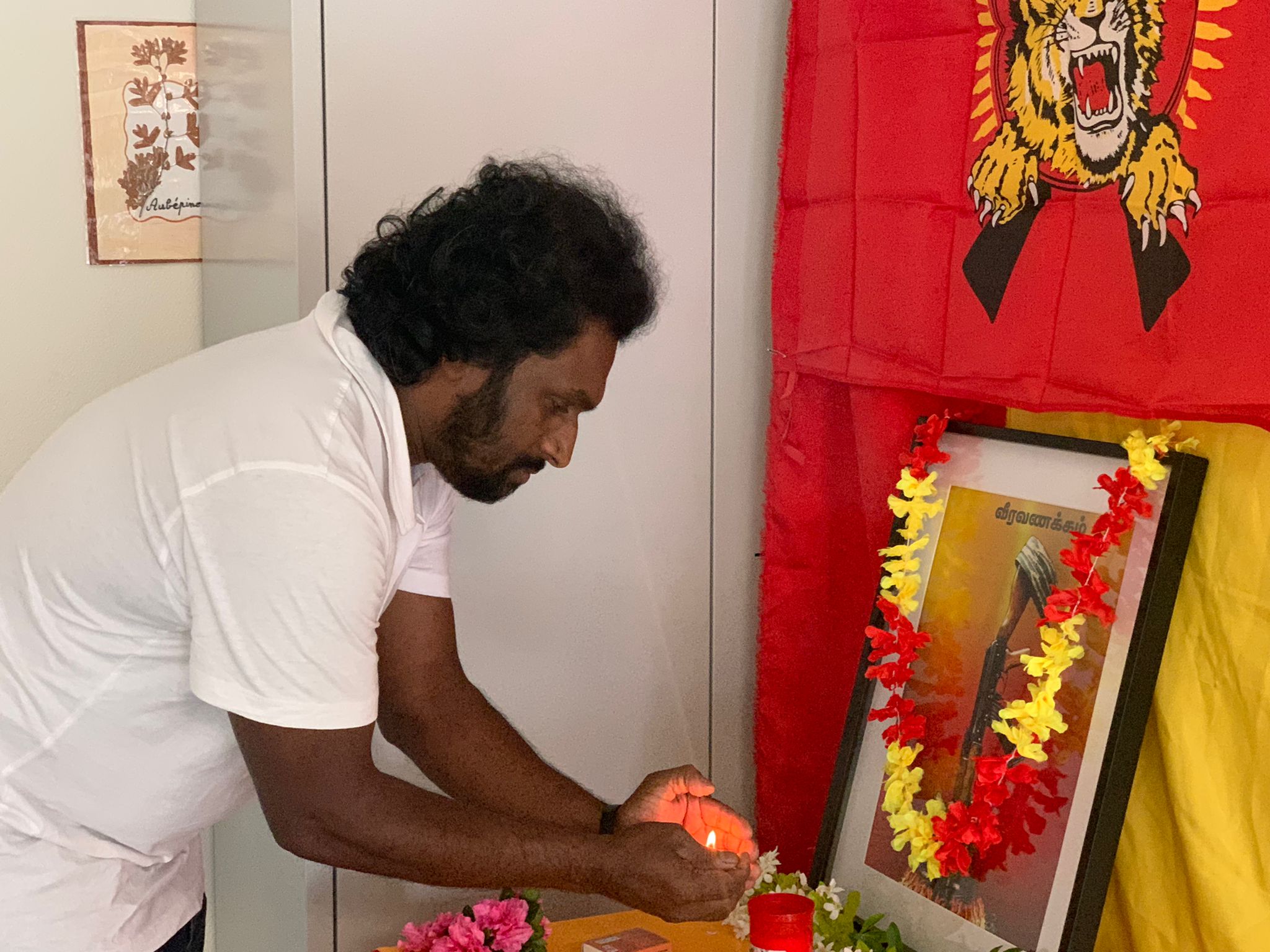 மாவீரர் பொதுப் படத்திற்கான ஈகைச்சுடரினை இரண்டு மாவீரர்களின் சகோதரர் ஏற்றிவைத்து மலர்வணக்கம் செலுத்தினார்.