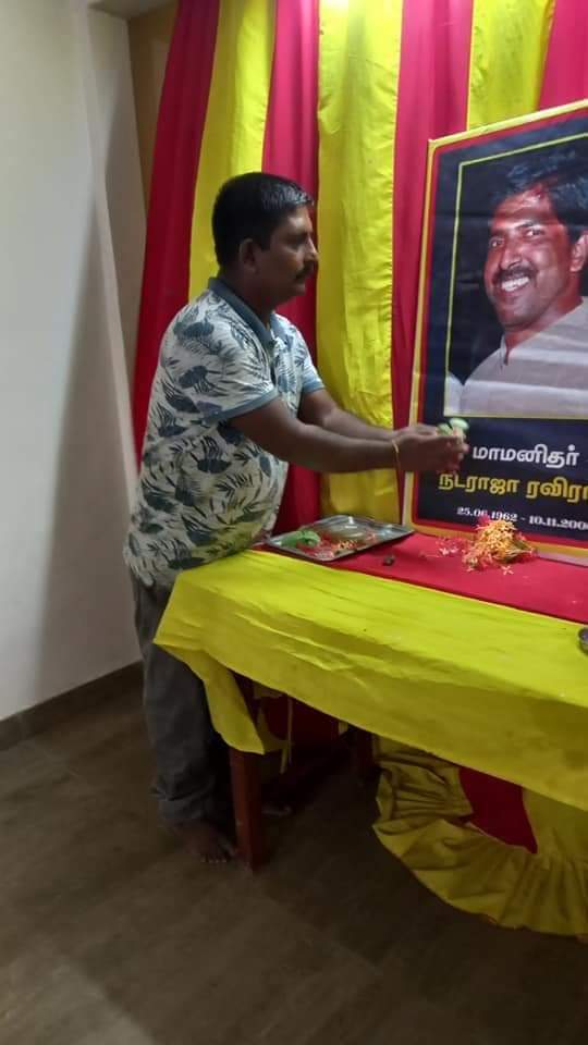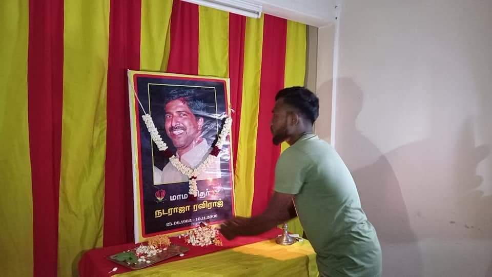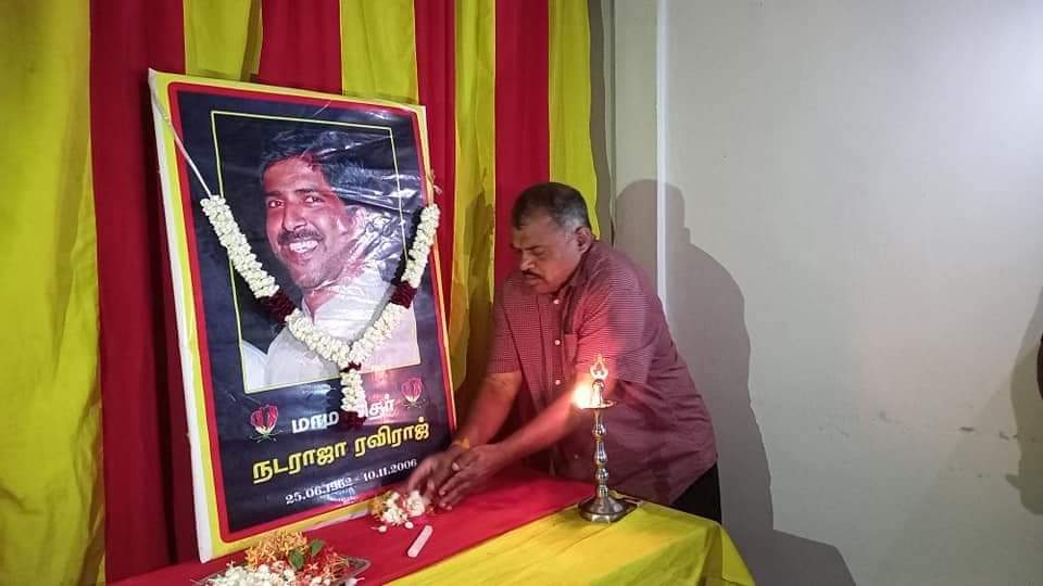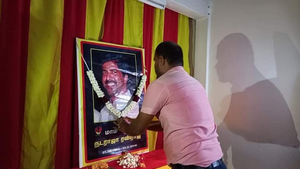 ஈழச்செய்திகள்சிறப்பு செய்திகள் மாமனிதர் நடராஜா ரவிராஜ் அவர்களின் 16 ஆம் ஆண்டு நினைவேந்தல்! By Admin - November 11, 2022 0 196 மாமனிதர் நடராஜா ரவிராஜ் அவர்களின் 16 ஆம் ஆண்டு நினைவேந்தல் நிகழ்வு நேற்று10.11.2022 வியாழக்கிழமைதமிழ்த் தேசிய மக்கள் முன்னணி தலைமைக் காரியாலயத்தில். இடம்பெற்றது.
