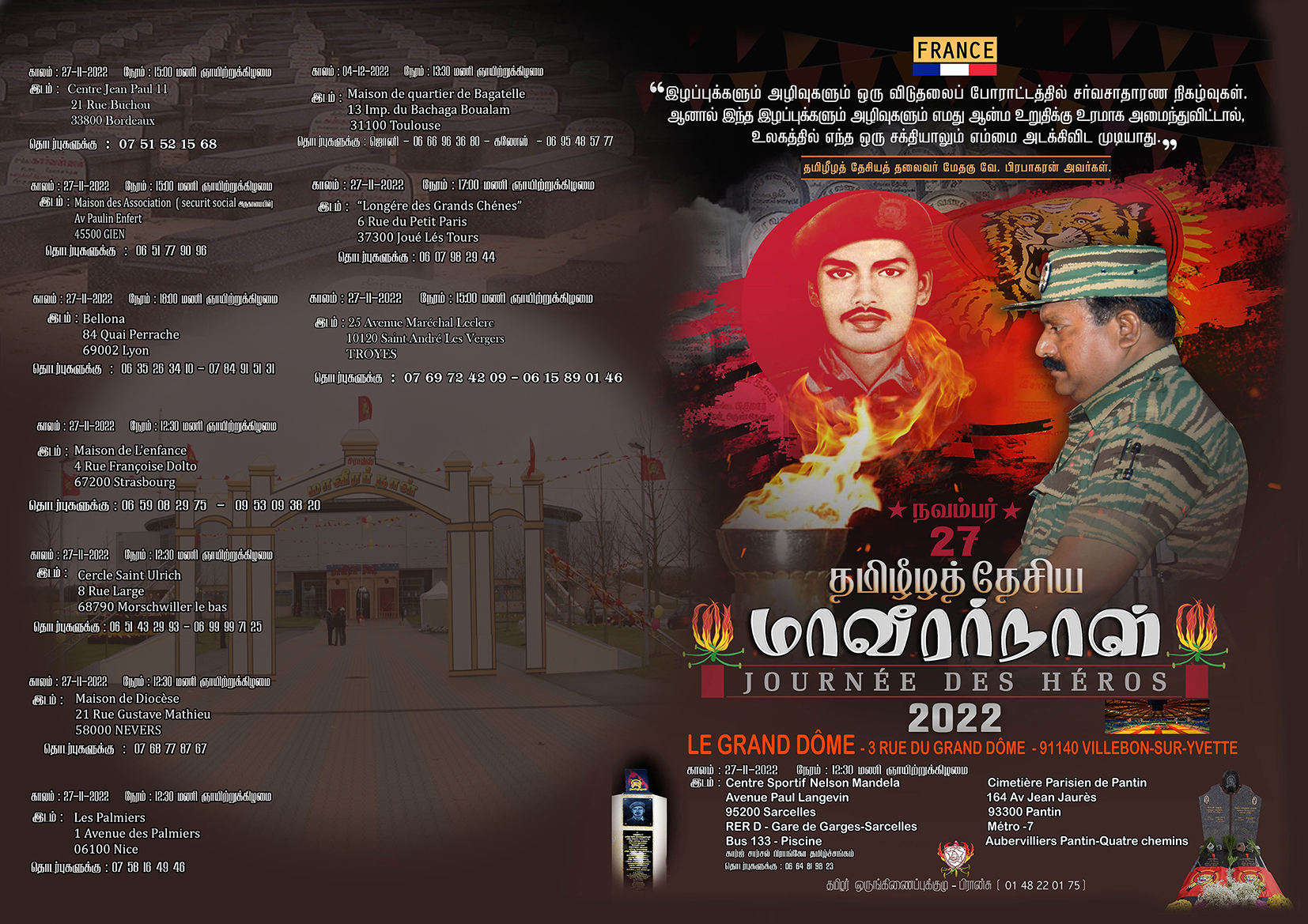 சிறப்பு செய்திகள்புலத்துச்செய்திகள் பிரான்சில் பாரிஸ் உட்பட வெளி மாவட்டங்களில் நடைபெறும் மாவீரர் நாள் விபரம்! By Admin - November 25, 2022 0 185 பிரான்சில் பாரிஸ் பிராந்தியம் உட்பட வெளிமாவட்டங்களில் நடைபெறவுள்ள மாவீரர் நாள் பற்றியவிபரங்களை பிரான்சு தமிழர் ஒருங்கிணைப்புக்குழு வெளியிட்டுள்ளது.