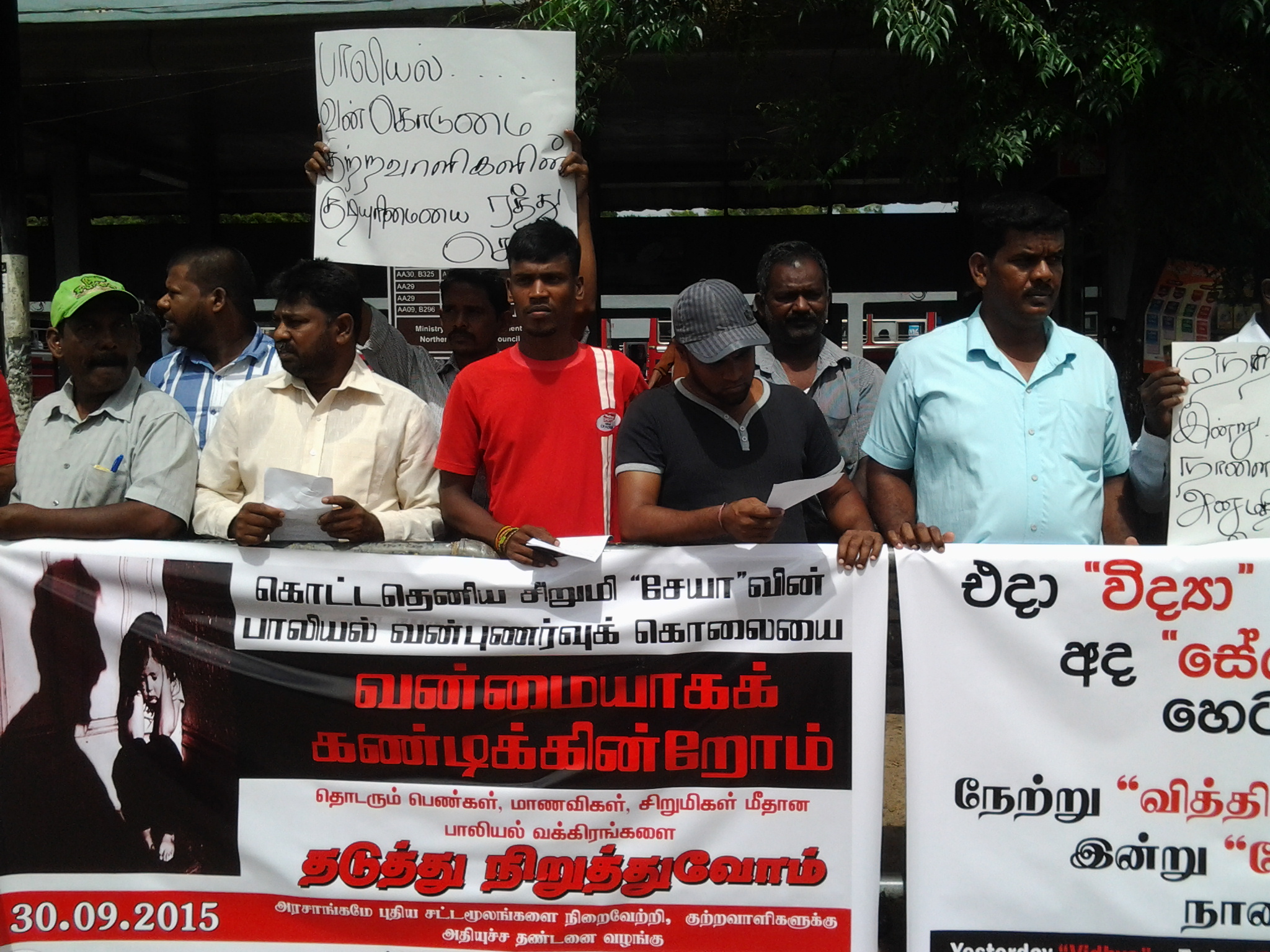 சிறுவர்களை பாலியல் துஸ்பிரயோகத்திற்கு உட்படுத்தி கொலை செய்த குற்றவாளிகளுக்கு அதிகபட்ச தண்டனை வழங்கவேண்டும் மற்றும் சிறுவர் மீதான வன்முறைக்கு எதிராக கடுமையான சட்டங்கள் கொண்டுவரப்படவேண்டும் என வலியுறுத்தி வவுனியா பேரூந்து நிலையத்திற்கு முன் ஆர்ப்பாட்டமொன்று இடம்பெற்றுள்ளது.