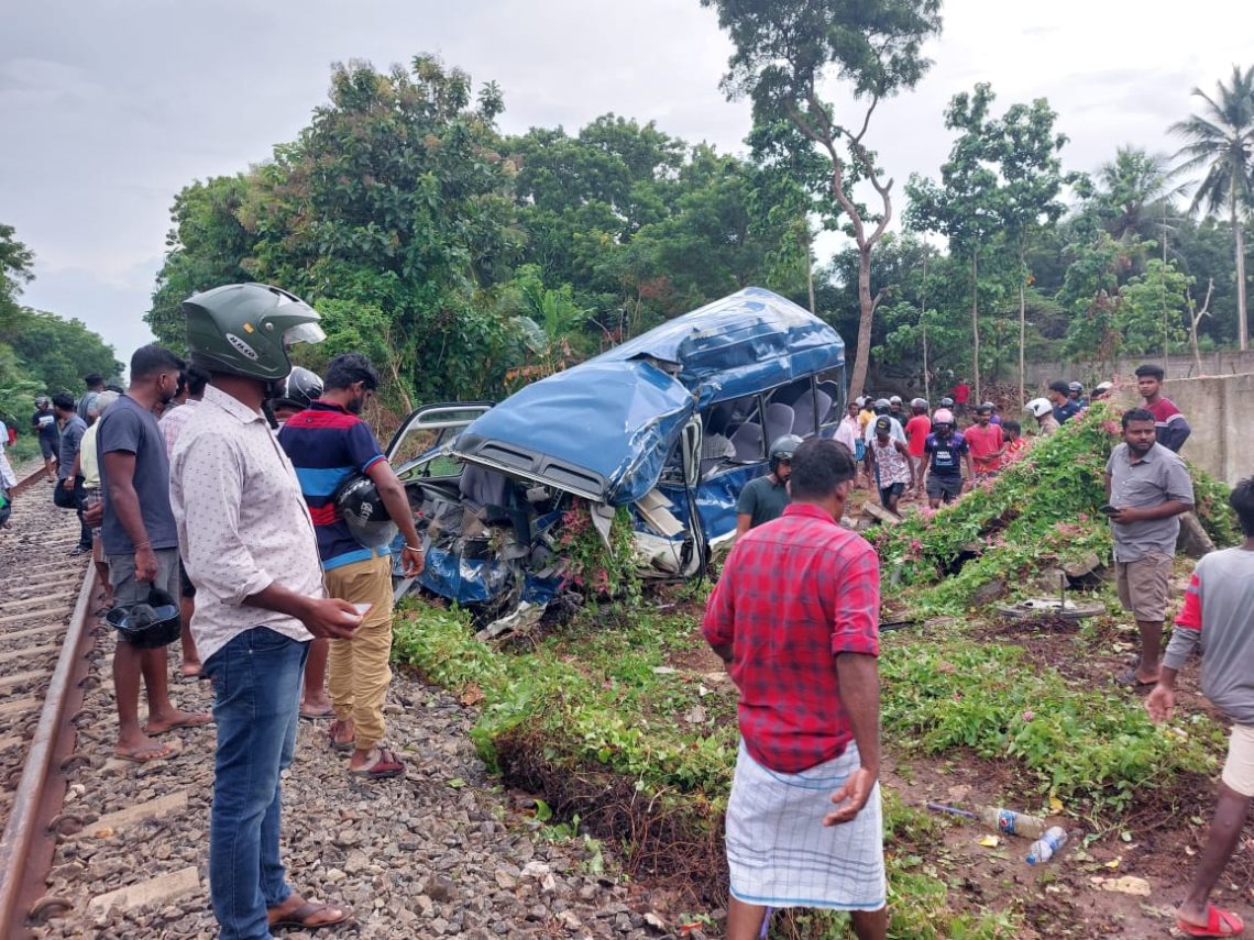 ஏ.வி. வீதியில் உள்ள பாதுகாப்பற்ற புகையிரத கடவையில், தொடருந்துடன் மினிவான் மோதி விபத்துக்கு உள்ளானதாக தெரிவிக்கப்படுகிறது.
