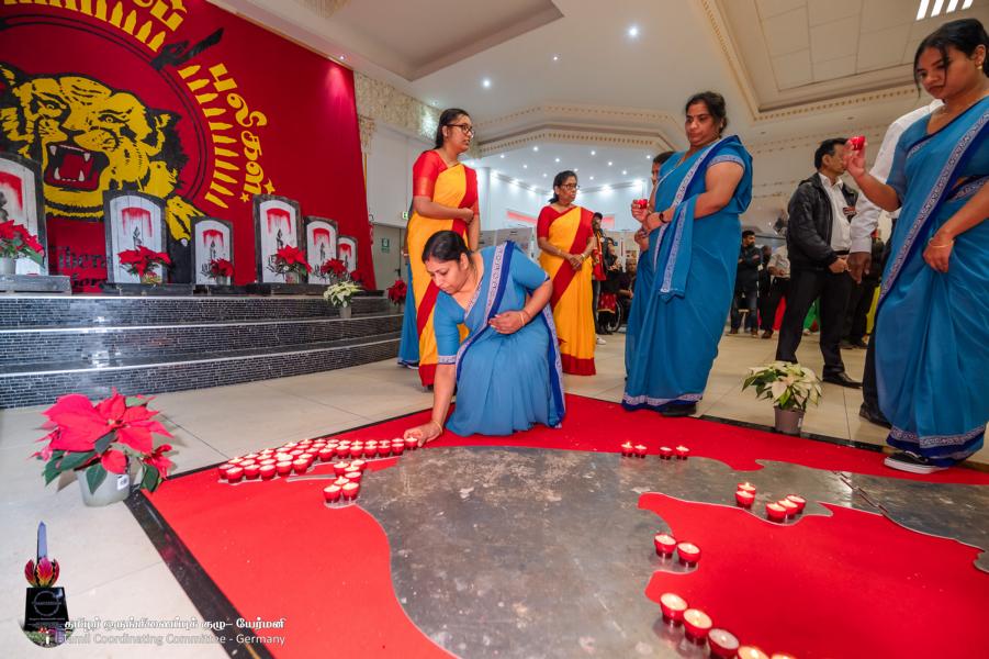 இந்த வருடம் வழமைபோன்று யேர்மனியில் ஒர் இடத்தில் மக்கள் மாவீரர்களுக்காக அணிதிரண்டு தங்களுக்காக உயிர்த்தியாகம் செய்த மாவீரர்களுக்கு விளக்கேற்றி மலர்தூவி வணக்கம் செலுத்தியதோடு தமிழீழத்தின் அடையாளங்களை அழிக்க நினைக்கும் சக்திகளுக்கு மிகப்பெரும் அரசியல் செய்தியையும் எடுத்துரைத்துள்ளார்கள்.