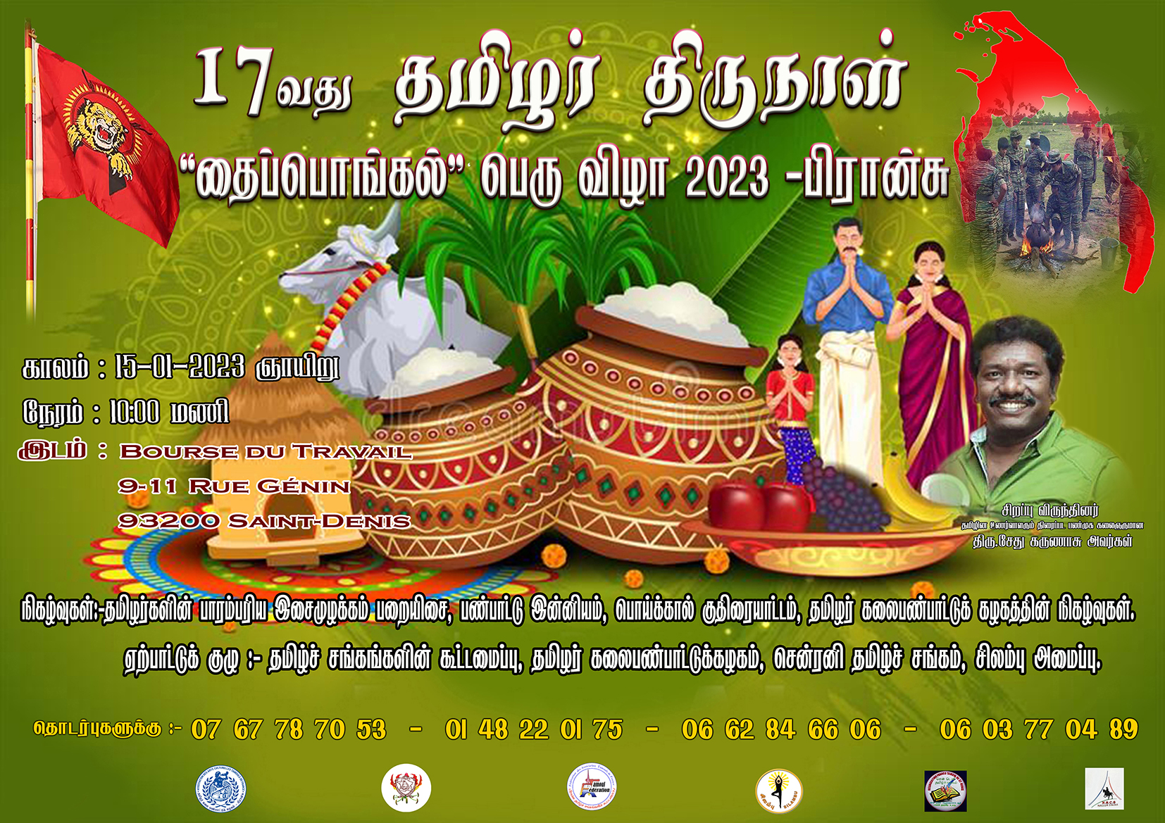 சிறப்பு செய்திகள்புலத்துச்செய்திகள் பிரான்சில் தமிழர் திருநாள் தைப்பொங்கல் பெருவிழா – 2023 By Admin - December 31, 2022 0 317 பிரான்சில் தமிழர் திருநாள் தைப்பொங்கல் பெருவிழா பிரான்சு தமிழர் ஒருங்கிணைப்புக் குழுவின் ஏற்பாட்டில் எதிர்வரும் 15.01.2023 ஞாயிற்றுக்கிழமை முற்பகல் 10.00 மணிக்கு செந்தனி பகுதியில் இடம்பெறவுள்ளது.