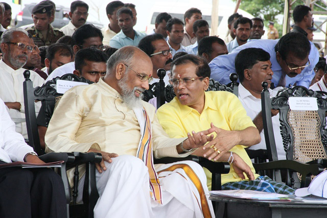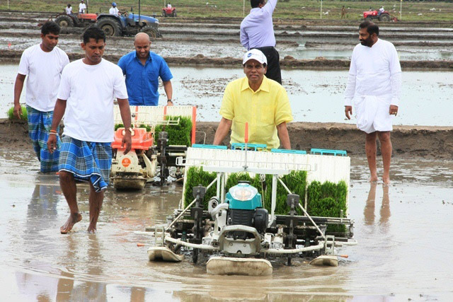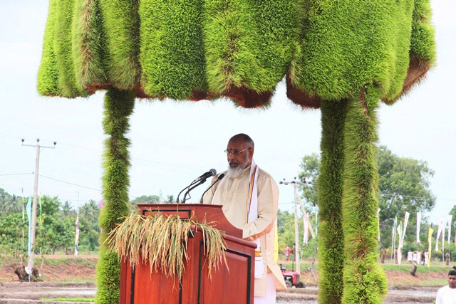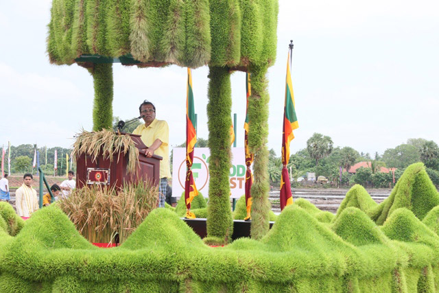 கிளிநொச்சி மருதநகர் பகுதியில் நடைபெற்ற ‘தேசிய உணவு உற்பத்தி ஊக்குவிப்பு நிகழ்ச்சி ‘ திட்டத்தில் பிரதம விருந்தினராக கலந்துகொண்ட ஜனாதிபதி மைத்திரிபால சிறிசேன வயலில் இறங்கி இயந்திரத்தின் மூலம் நாற்றுக்களை நாட்டி வைத்தார்.