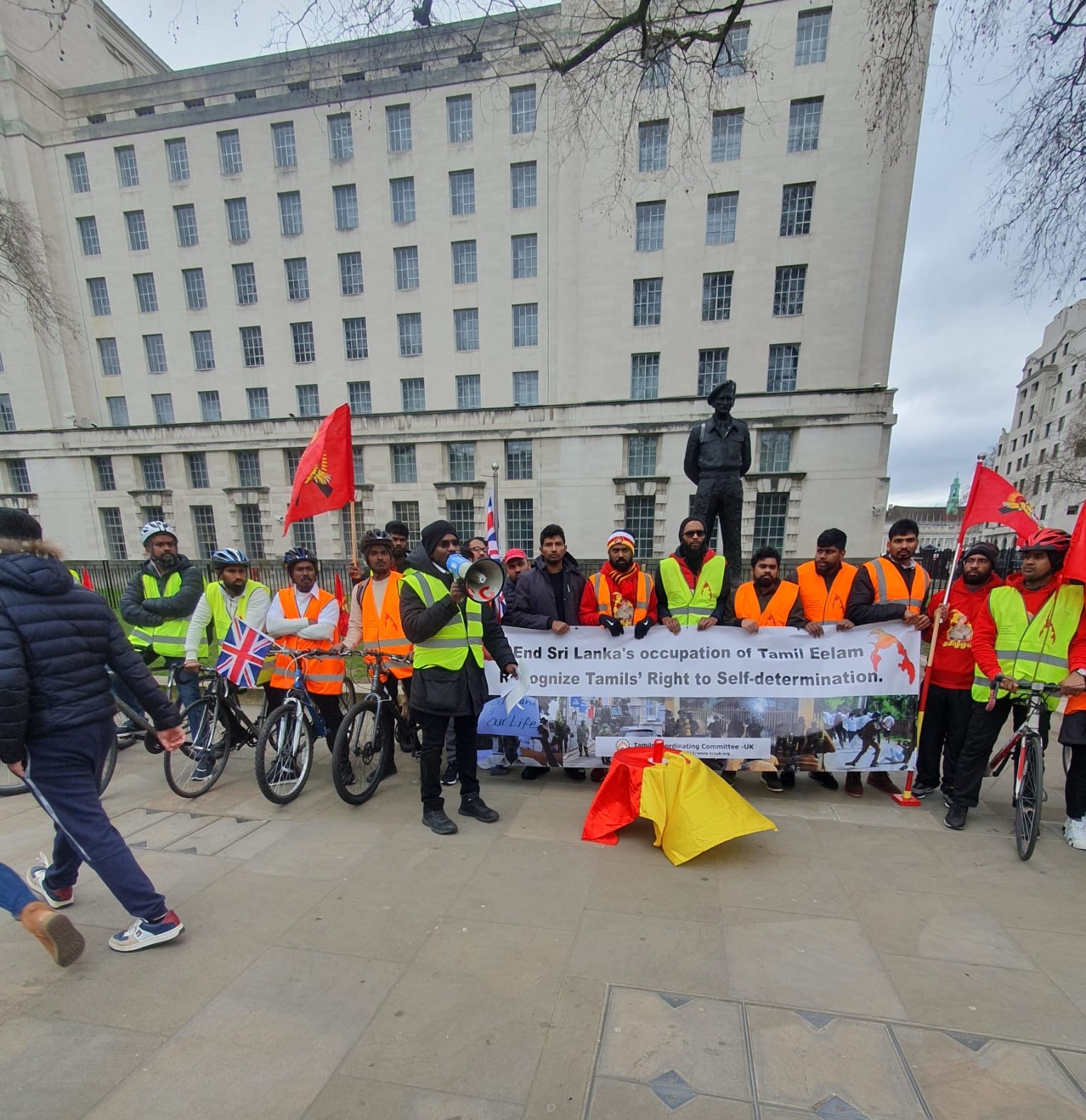 மனித உரிமைகள் ஆணையகத்தின் 52 வது கூட்டத்தொடரில் சிறிலங்கா பேரினவாத அரசினால் திட்டமிட்டு நடாத்தப்படுகின்ற தமிழின அழிப்பிற்கு அனைத்துலக சுயாதீன விசாரணையை நடாத்தக் கோரியும் தமிழீழமே தமிழர்களுக்கான நிரந்தரத் தீர்வு என்பதனை வலியுறுத்தியும் இன்று காலை 10 மணியளவில் பிரித்தானிய இல்லத்துக்கு முன்பாக, பிரதமர் அலுவலகத்திலும் வெளிவிவகார அமைச்சகத்திலும் மனுவைக் கையளித்த பின்னர் ஐ . நா நோக்கி ஈருருளிப்பயணம் ஆரம்பிக்கப்பட்டுள்ளது.