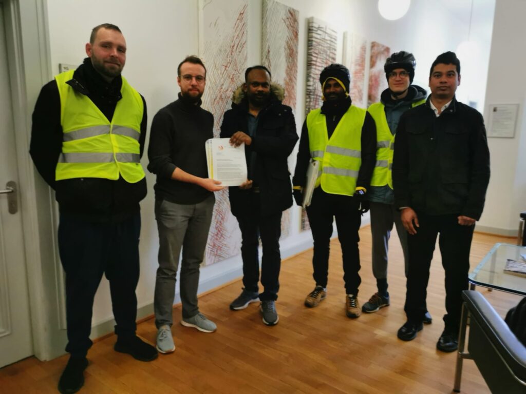 இந்த மனித நேய ஈருருளிப்பயணம் நெதர்லாந்தின் டென் ஹாக் நகரில் அமைந்துள்ள அனைத்துலக குற்றவியல் நீதிமன்றம் ( International Criminal Court) முன்பாக கனயீர்ப்புப் போராட்டம் நடைபெற்று, பெல்சியம் நோக்கி பயணித்து,புரூசல் மாநகரத்தில் அமைந்துள்ள ஐரோப்பிய பாராளுமன்றின்முன் கவனயீர்ப்புப் போராட்டத்துடன் ஈருருளிப்பயணம் தொடர்ந்து பயணித்து.பெல்சியம் நாட்டினை ஊடறுத்து ,பெல்ஜியத்தில் உள்ள மற்றுமொரு நகரமாகிய அர்லோன்(Belgiem Arlon) நகரத்தை அடைந்து அங்கு மாநகரசபை முதல்வரைச் சந்தித்து தமிழின அழிப்புச் சம்பந்தமான மனு கையளிக்கப்பட்டது.பின் லுக்ஸ்சம்பூர்க்(Luxemburg) எல்லையை வந்தடைந்த ஈருருளிப்பணப் போராட்டம் யேர்மனி நோக்கி பயணித்து மாலை டில்லிங்கன் என்ற இடத்தில் நிறைவு பெற்றது.தொடர்ந்து நேற்று(23.02.2023) வியாழக்கிழமை அகவணக்கத்துடன் ஆரம்பித்த ஈருருளிப்பயணம் சால்புறூக்கன் நகரத்தை அடைந்து, அரசியல் சந்திப்பினைத்தொடர்ந்து மனுக்கையளிக்கப்பட்டு, தொடர்ந்தும் ஜேர்மனூடாக பிரான்ஸ் சென்று ஐரோப்பிய பாராளுமன்றம் ஊடாக சுவிஸ் நாட்டிற்குள் சென்று .06.03.2023 அன்று ஜெனீவா ஐக்கிய நாடுகள் சபையை சென்றடையவுள்ளது.