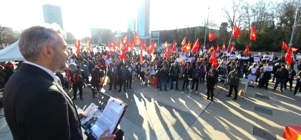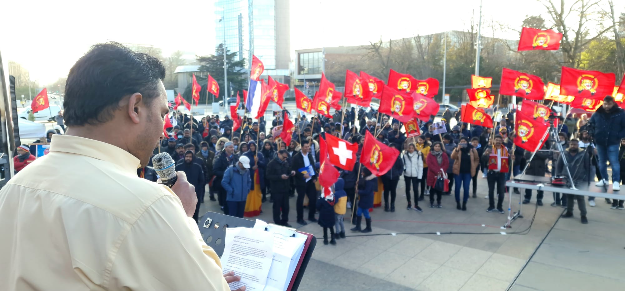 சிறப்பு செய்திகள்புலத்துச்செய்திகள் ஜெனிவாவில் இன்று ஒன்று திரண்டு உரக்கக் குரல் கொடுத்த தமிழ் மக்கள்! By Admin - March 7, 2023 0 206 தமிழின அழிப்பிற்கு நீதியை பெற்றுக்கொடுக்க சர்வதேச சமூகம் முன்வர வேண்டும் என்று வலியுறுத்தி- ஜெனீவாவிலுள்ள ஐ.நா தலைமையகத்திற்கு முன்பாக புலம்பெயர் தமிழர்கள் இன்று 06.04.2023 திங்கட்கிழமை பல்வேறு ஐரோப்பிய நாடுகளில் இருந்தும் ஒன்று திரண்டனர்.