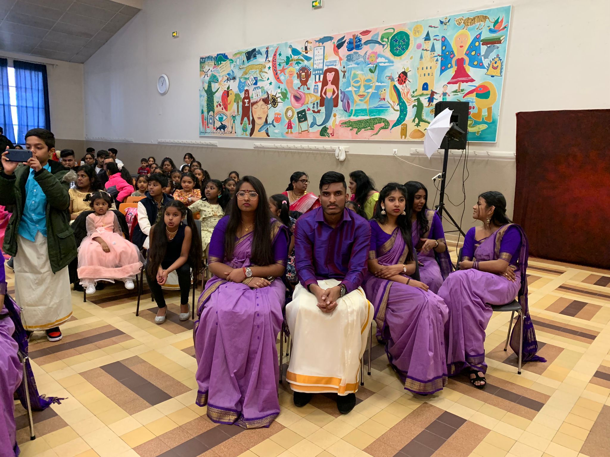 பிரான்சு தேசியப் பண், தமிழ்ச்சோலைப் பண் இசைக்கப்பட்டதைத் தொடர்ந்து லு புளோமெனில் தமிழ்ச்சோலை மாணவ மாணவியரின் கலை நிகழ்வுகள் ஆரம்பமாகின.