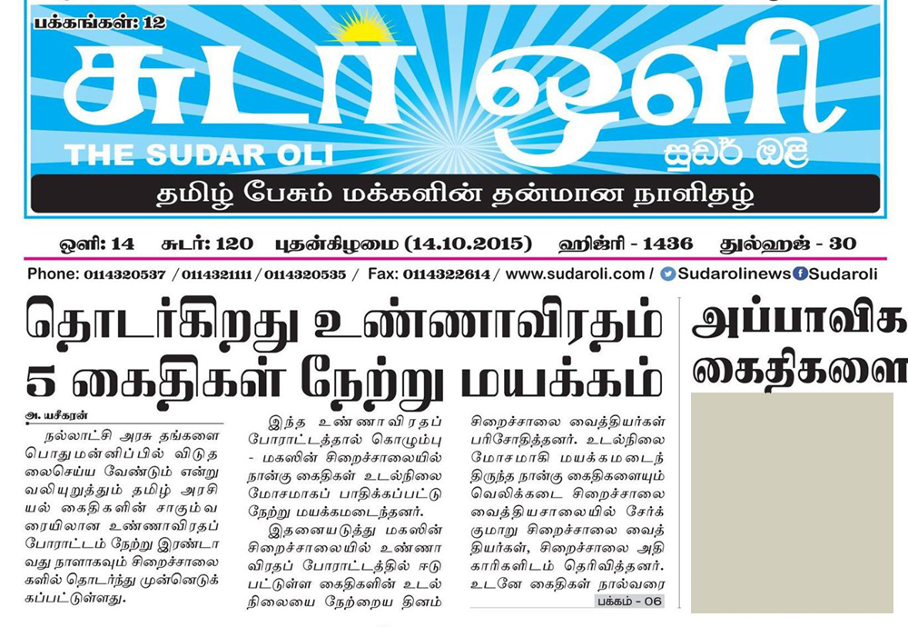 * தொடர்கிறது உண்ணாவிரதம்! 5 கைதிகள் நேற்று மயக்கம்!!