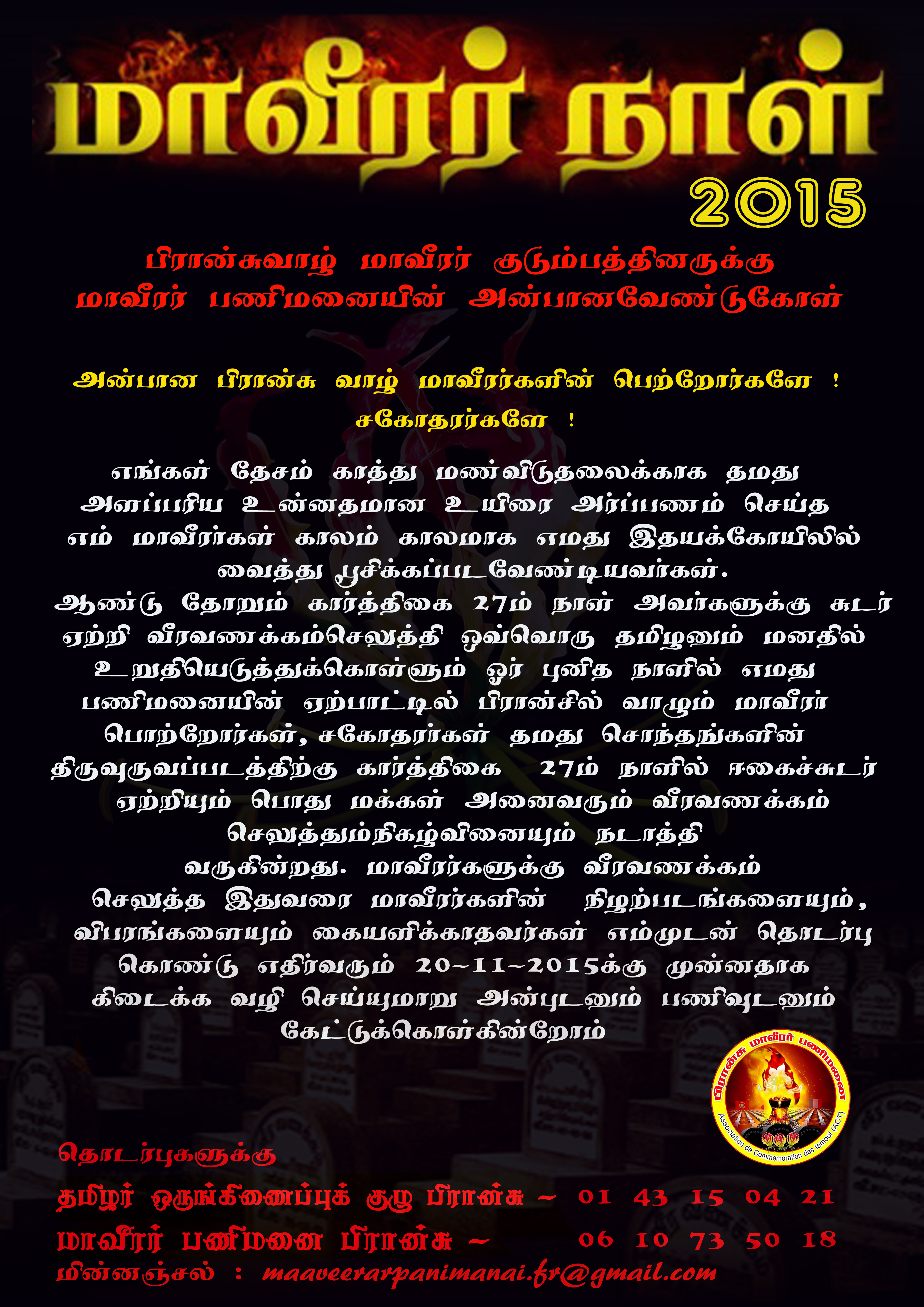மின்னஞ்சல்: maaveerarpanimanai.fr@gmail.com