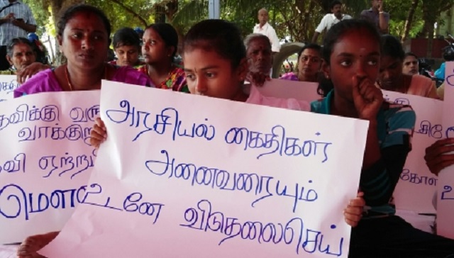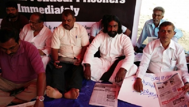 இதன்போது, ‘அரசியல் கைதிகளின் உண்ணாவிரதப் போராட்டம் நியாயமானதே, ‘சிறை வாழ்வுதான் தமிழருக்கு நிரந்தரமா?’ அரசே தமிழர்களுக்கு ஓர் நீதி சிங்களவர்களுக்கு ஓர் நீதியா? மைத்திரியே உனக்கும் கொடுங்கோலன் ராஜபக்சவுக்கும் என்ன வேறுபாடு, அரசே அரசியல் இரட்டை வேடத்தை நிறுத்து’ ‘சர்வதேசம் அரசியல் கைதிகளின் விடுதலைக்கு அழுத்தம் கொடு’ போன்ற வாசகங்கள் பொறிக்கப்பட்ட பதாதைகளையும் ஏந்திய நிலையில் போராட்டத்தை முன்னெடுத்து வருகின்றனர்.
