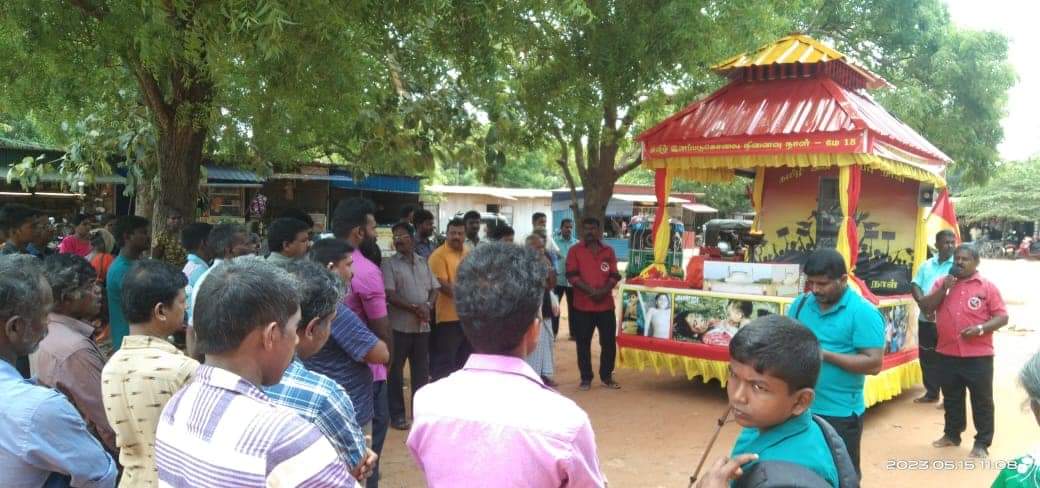 பின்னர் இன்று 15.05.2023 திங்கட்கிழமை காலை கிளிநொச்சி சந்தைவளாகத்தில் ஆரம்பித்து சாவகச்சேரியை அடைந்தது இன குறித்த அஞ்சலிஊர்திக்கு பெரும்திரளான மக்கள் அஞ்சலி செலுத்திவருகின்றனர்.