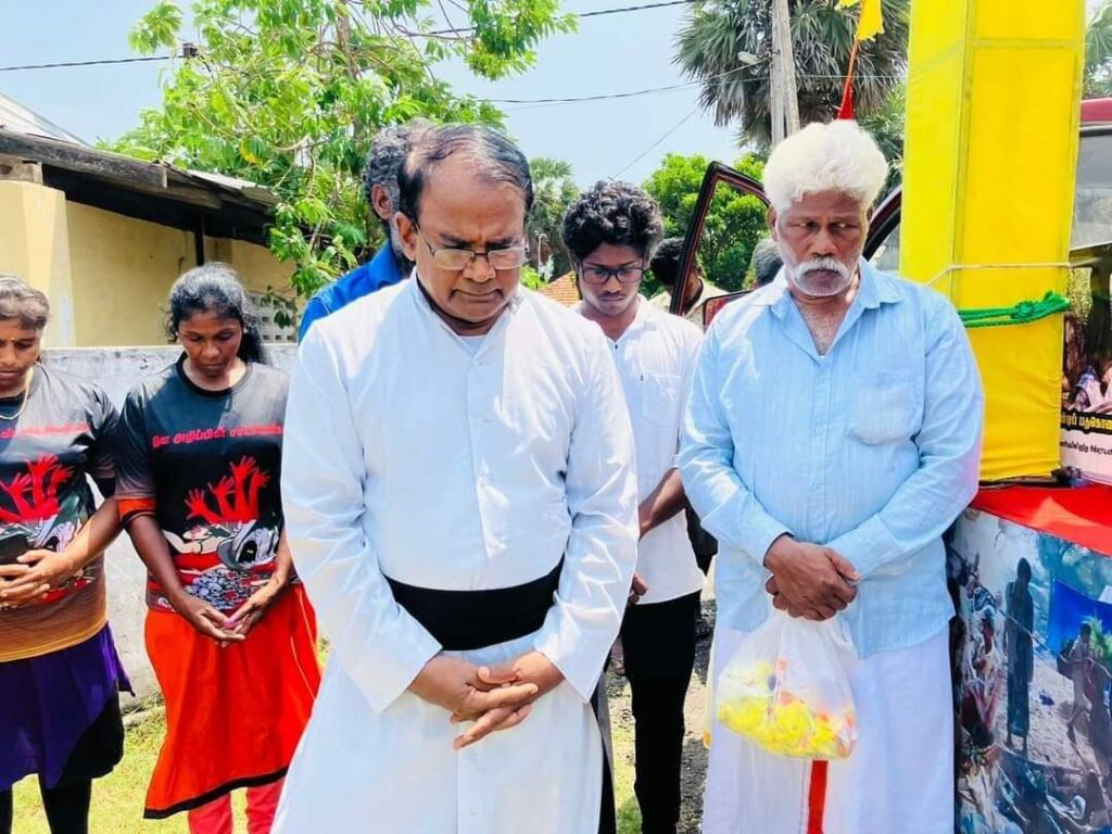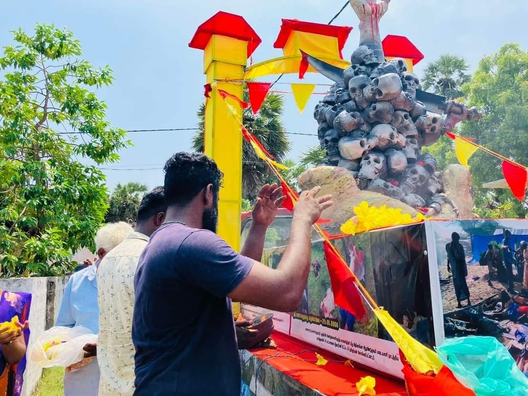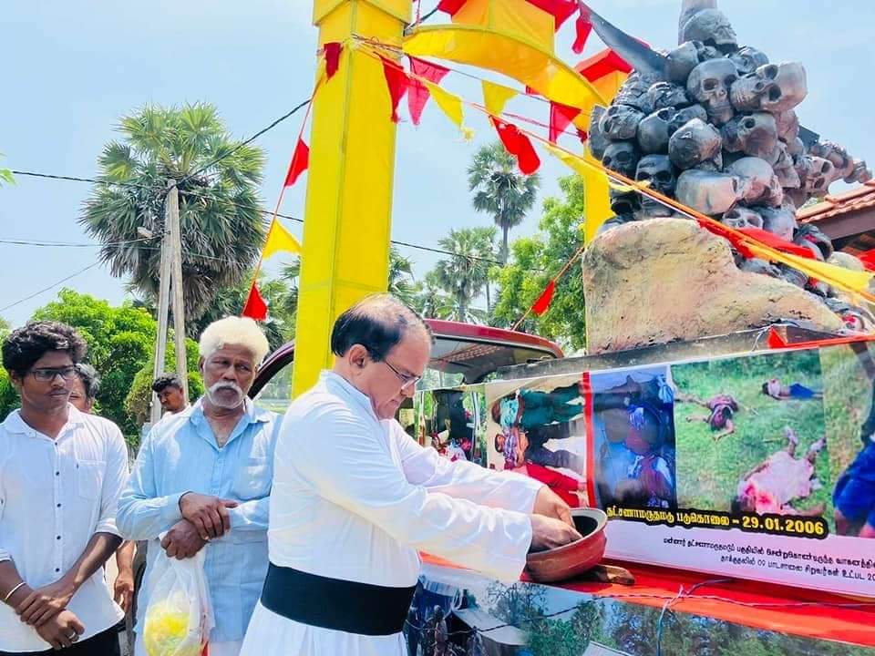 ஈழச்செய்திகள்சிறப்பு செய்திகள் அல்லைப்பிட்டி படுகொலை நடந்த தேவாலயத்தில் ஊர்திப்பவனி அஞ்சலி! By Admin - May 16, 2023 0 228 அல்லைப்பிட்டி படுகொலை நடந்த தேவாலயத்தில் முள்ளிவாய்க்கால் இனப்படுகொலை நினைவு சுமந்த ஊர்திப்பவனி அஞ்சலி அருட்தந்தை றெக்னோ அடிகளாரின் தலைமையில் சுடரேற்றி மலர்தூவி தமிழ் தேசிய மக்கள் முன்னணியின் ஏற்பாட்டில் இன்று 16.05.2023 செவ்வாய்க்கிழமை இடம்பெற்றன.